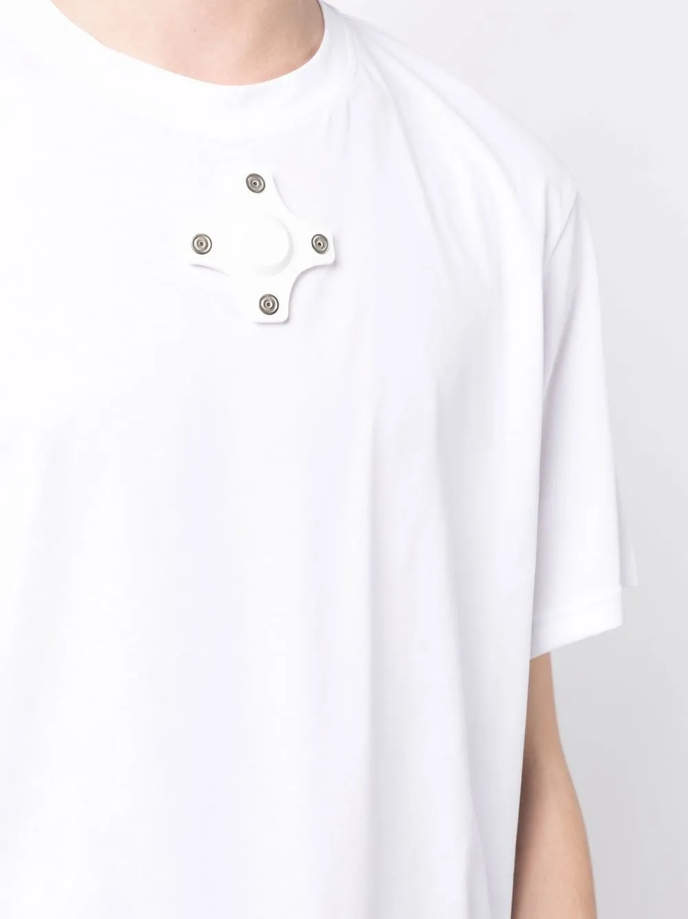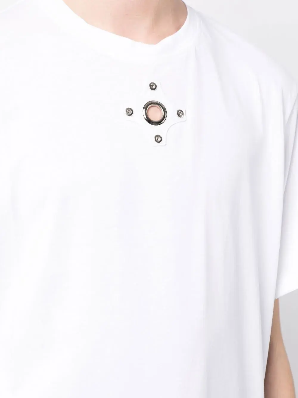 Расцветка Cloud White, хлопок, отделка металлическими люверсами, круглый вырез, короткие рукава и прямой подол.