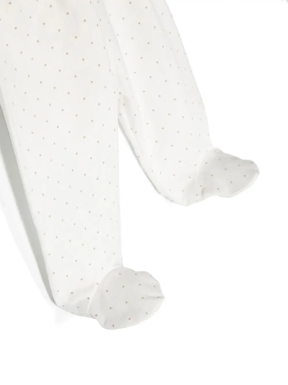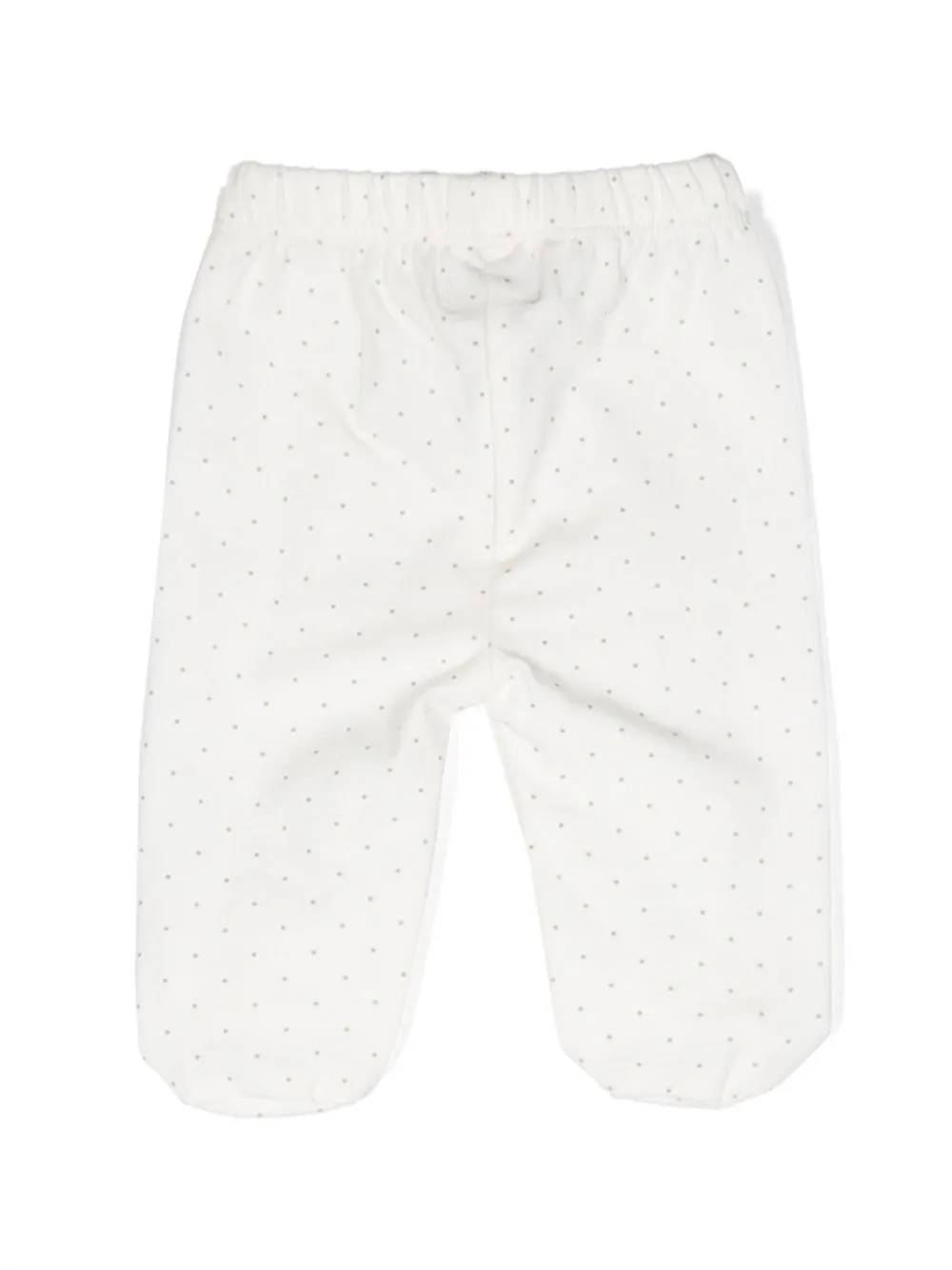 Кремовый, хлопок, принт в горох, кулиска на талии и модель с закрытыми ступнями.