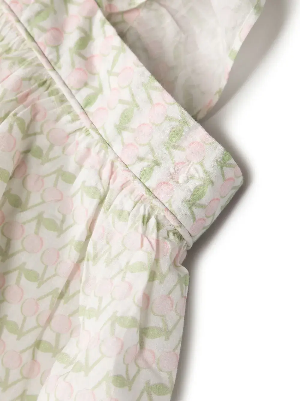 Белый/разноцветный, хлопок, знаковый принт Cherry, отделка с оборками, V-образный вырез, без рукавов, застежка на пуговицы сзади, прямой подол и длина миди.