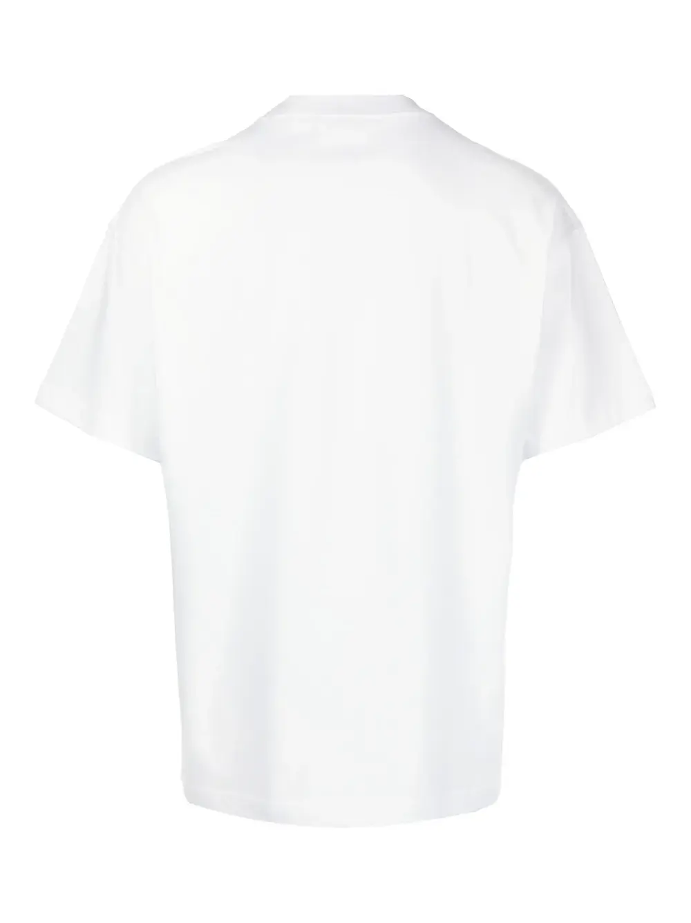 Белый, органический хлопок, принт пейсли, логотип спереди, круглый вырез, короткие рукава и прямой подол.