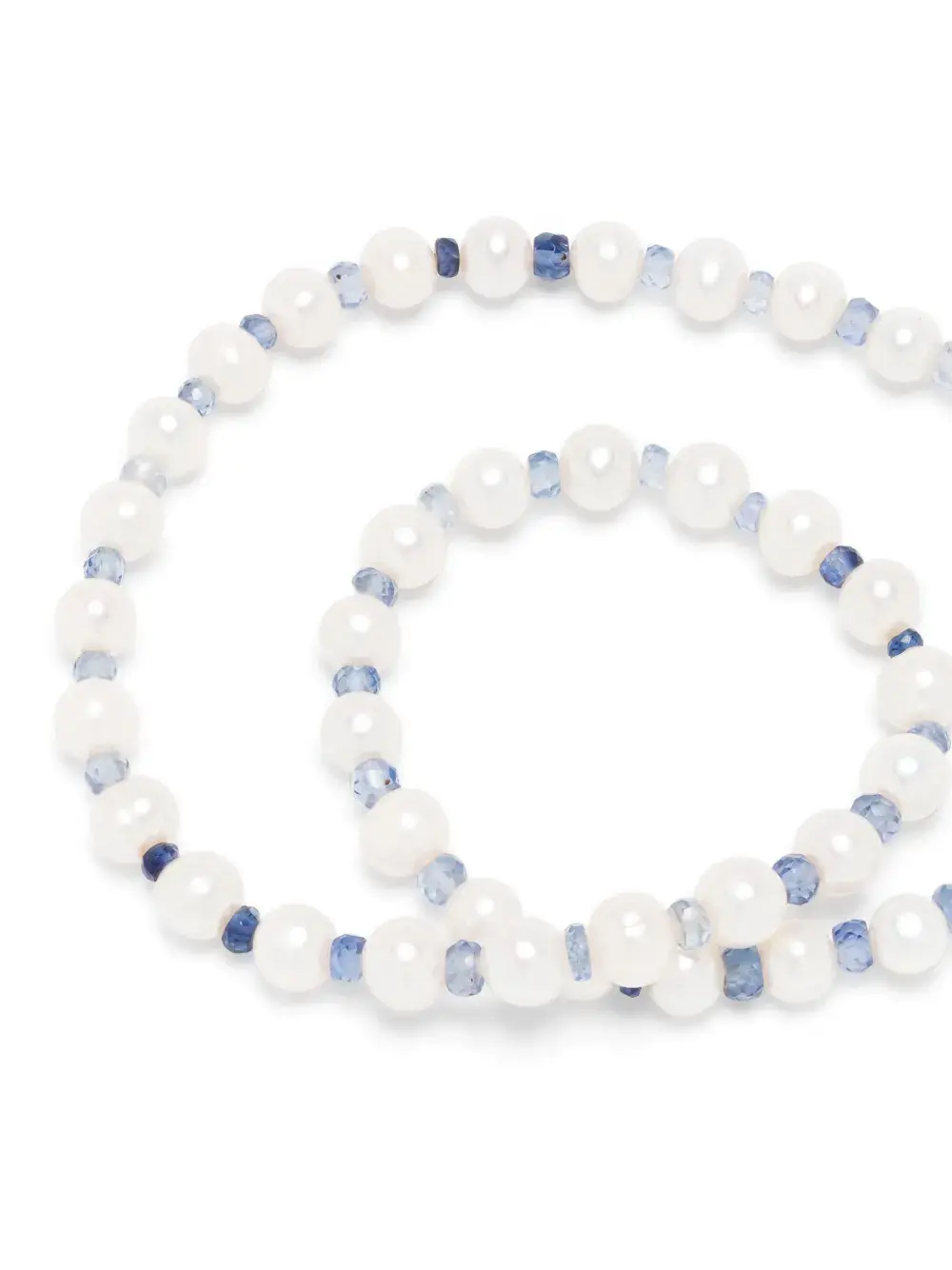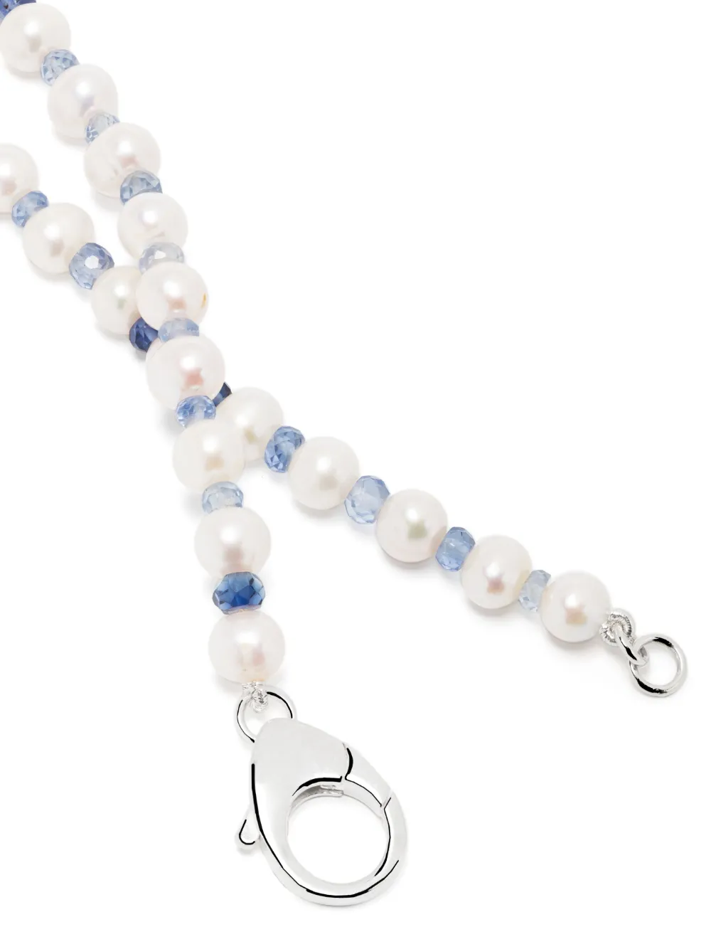 Серебристый, кремово-белый, кобальтово-синий, серебро 925 пробы, вставки из пресноводного жемчуга, декор из кристаллов, серебристая фурнитура с выгравированным логотипом и застежка-карабин.