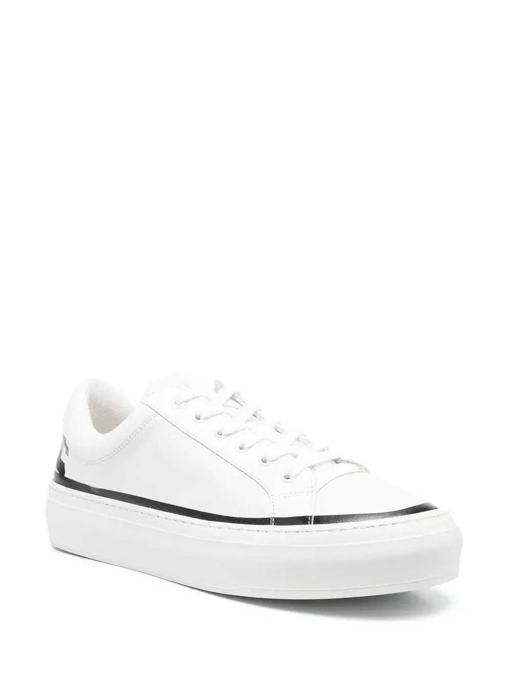 Белый/черный, телячья кожа, принт с логотипом сзади, уплотненная щиколотка, шнуровка спереди, закругленный носок и плоская резиновая подошва.