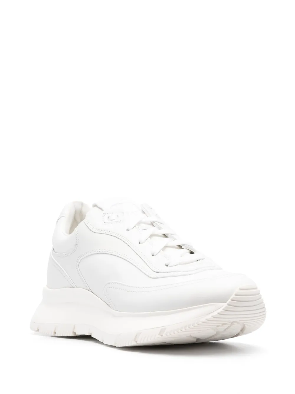Белый, телячья кожа, вставки, закругленный носок, язычок с вышитым логотипом, шнуровка спереди, логотип на подошве и массивная подошва.