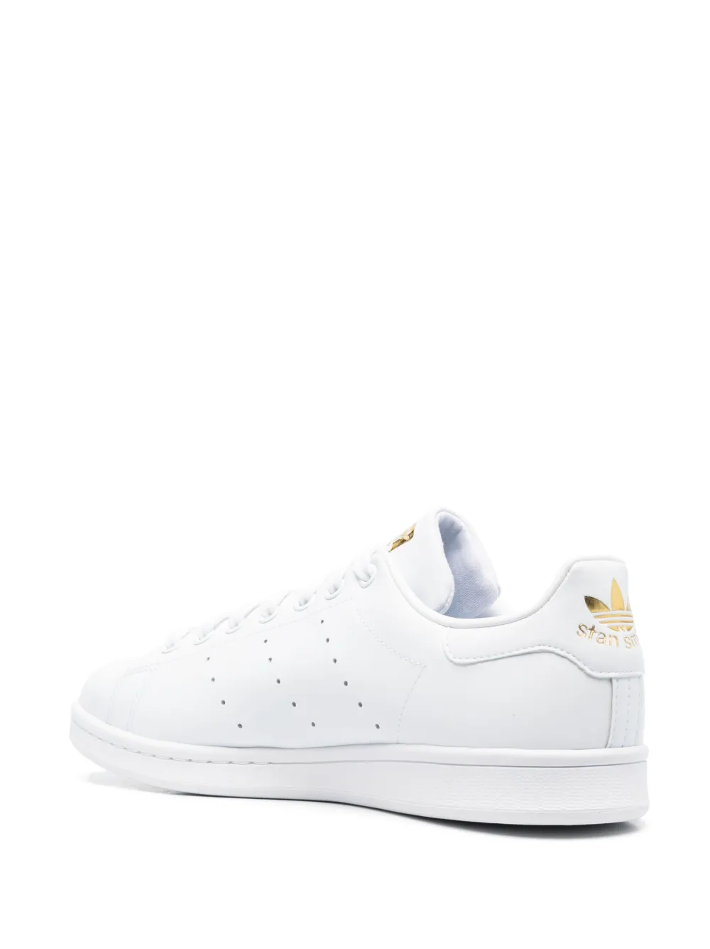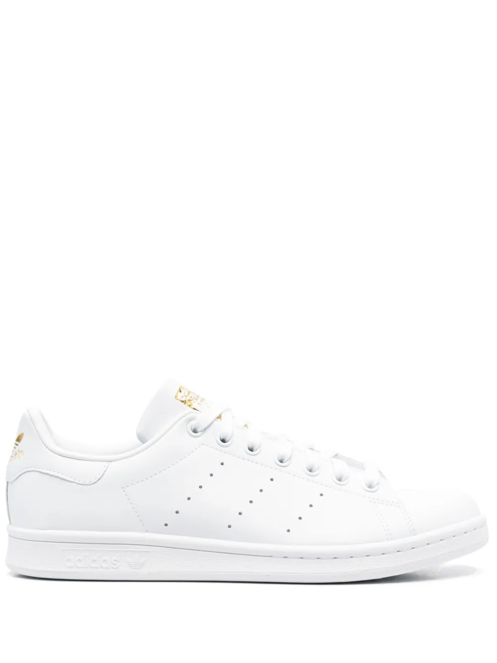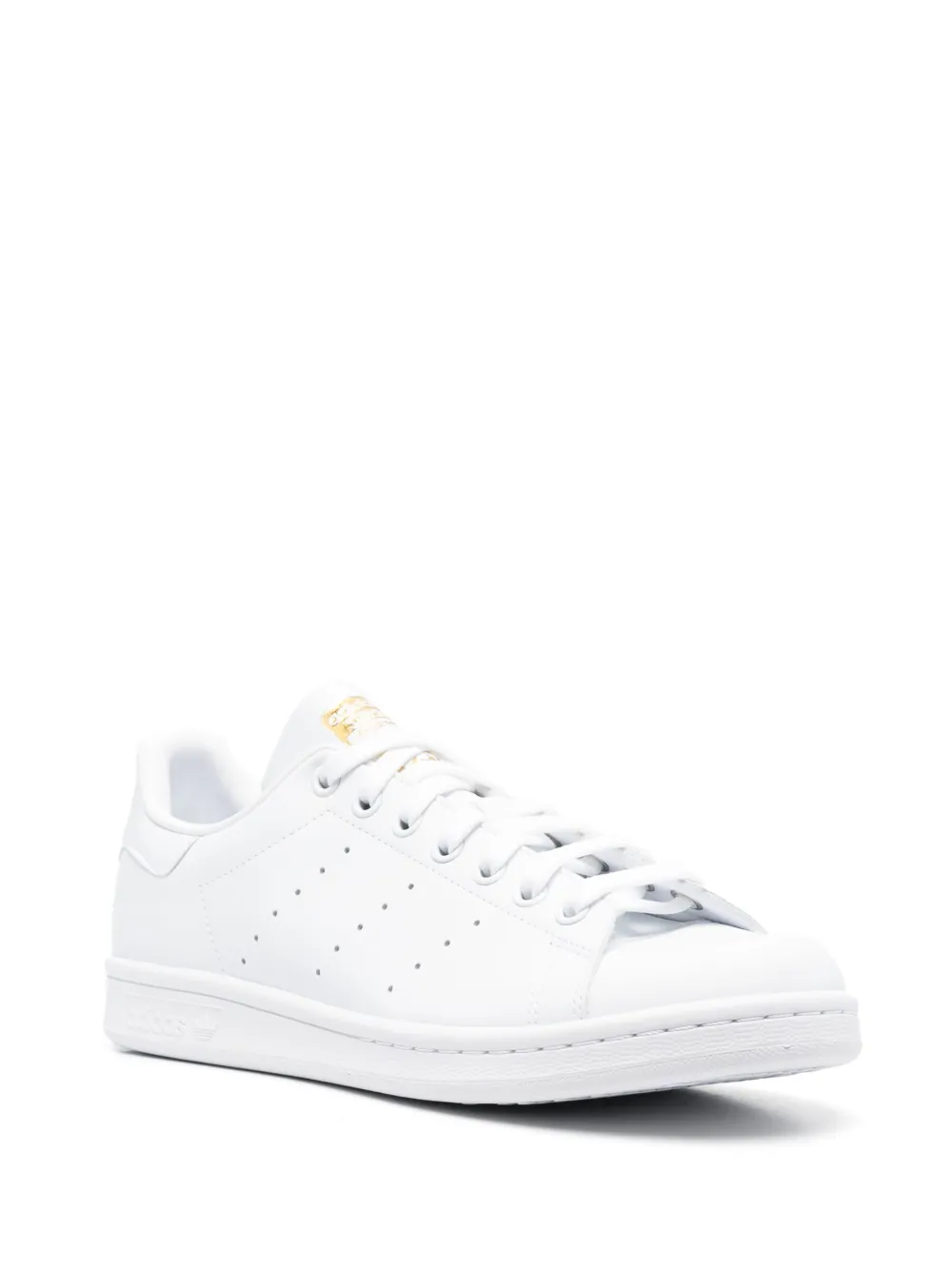 Белый, перфорация, нашивка с логотипом на язычке, задник с логотипом, закругленный носок, шнуровка спереди, стелька с логотипом и плоская резиновая подошва.