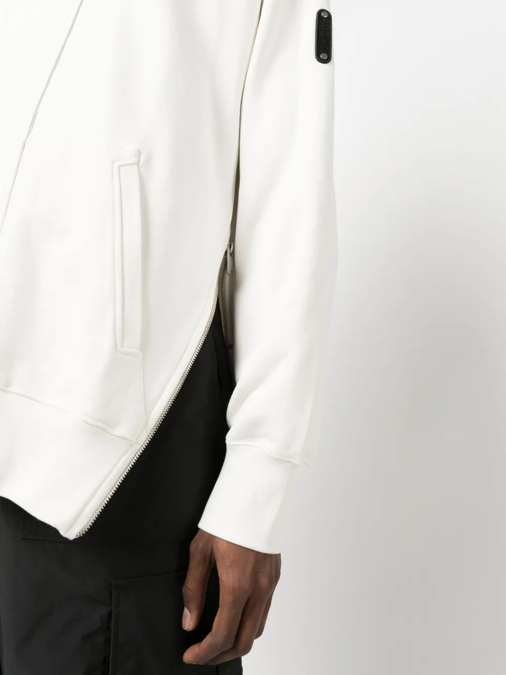 Белый, оранжевый, хлопок, графичный принт на спине, принт с логотипом на груди, классический капюшон, застежка на молнии спереди, два передних кармана, длинные рукава, прямой подол и отделка в рубчик.