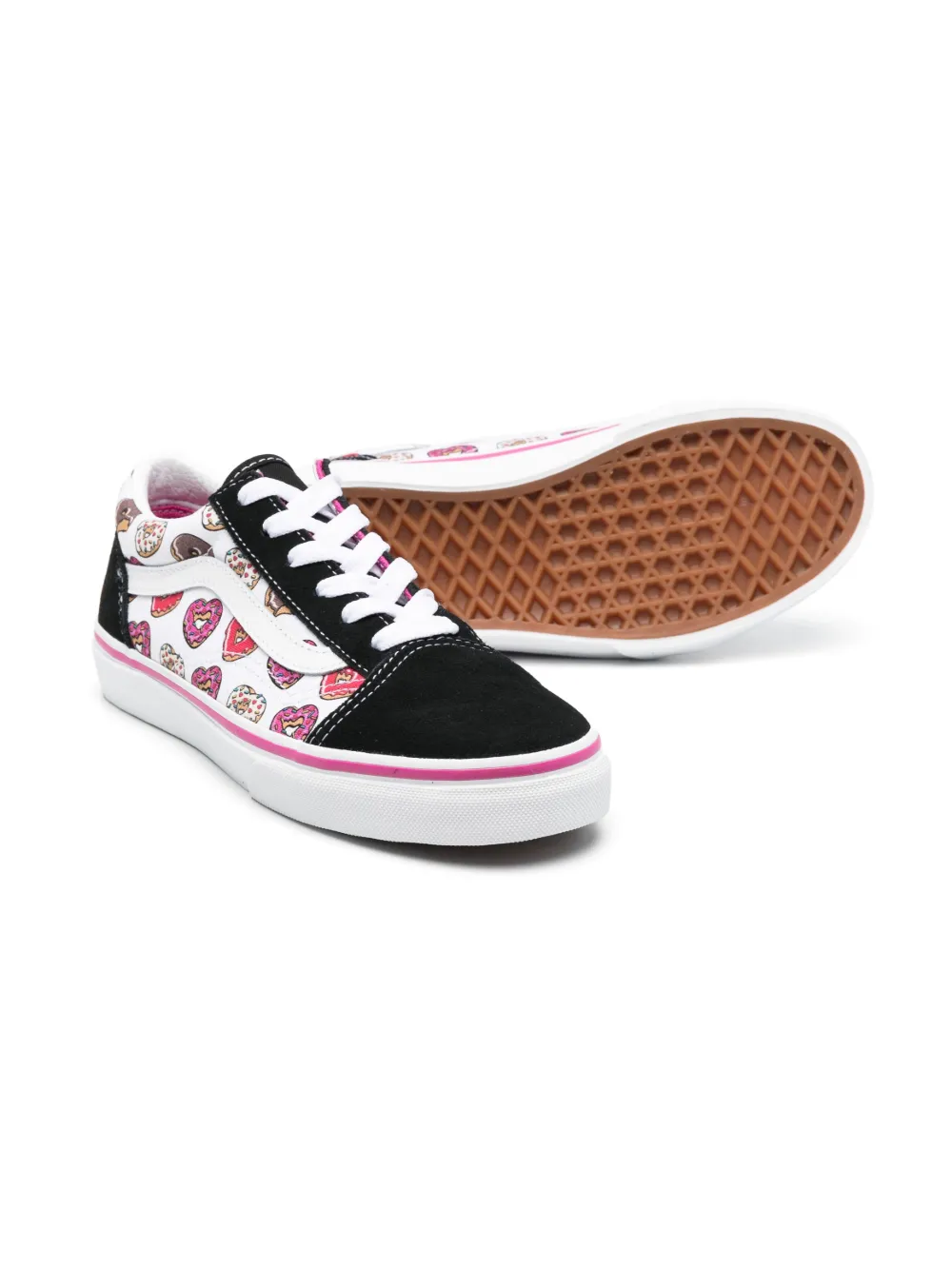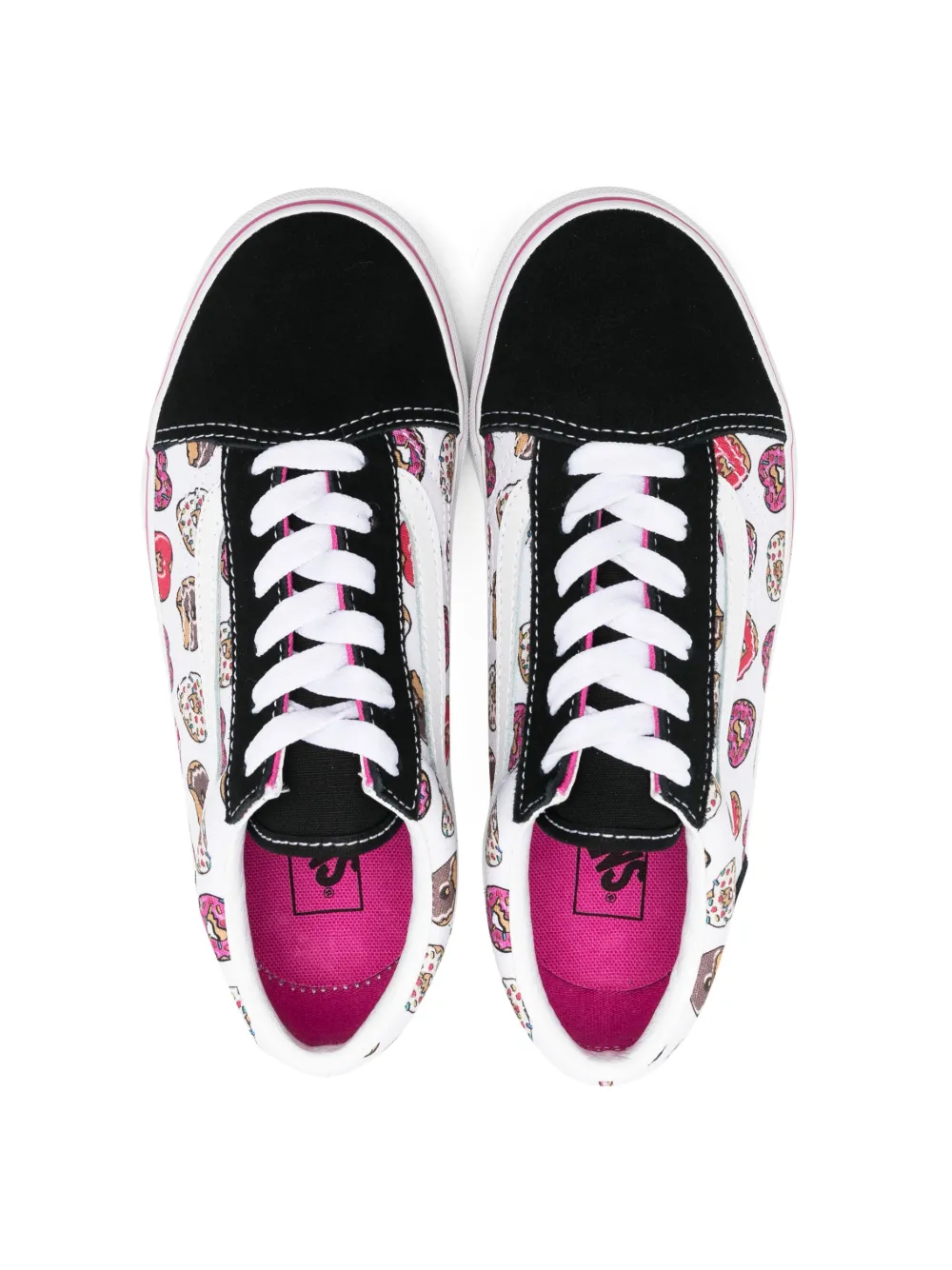 Белый/разноцветный, парусина, замша из телячьей кожи, сплошной графичный принт, контрастные вставки, полоска сбоку, уплотненная щиколотка, закругленный носок, шнуровка спереди, стелька с логотипом и вафельная подошва.