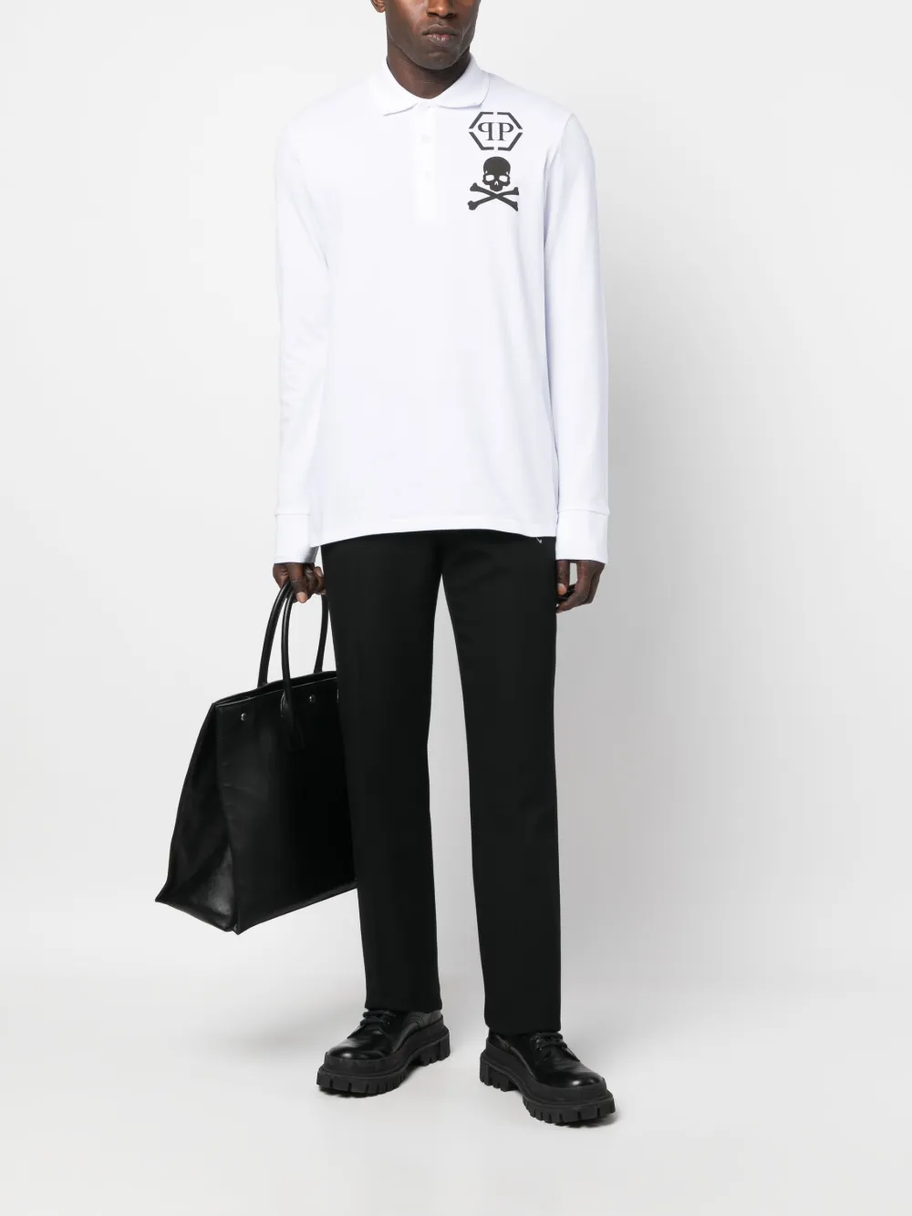 Рубашка поло с длинными рукавами и логотипом Philipp Plein, белый