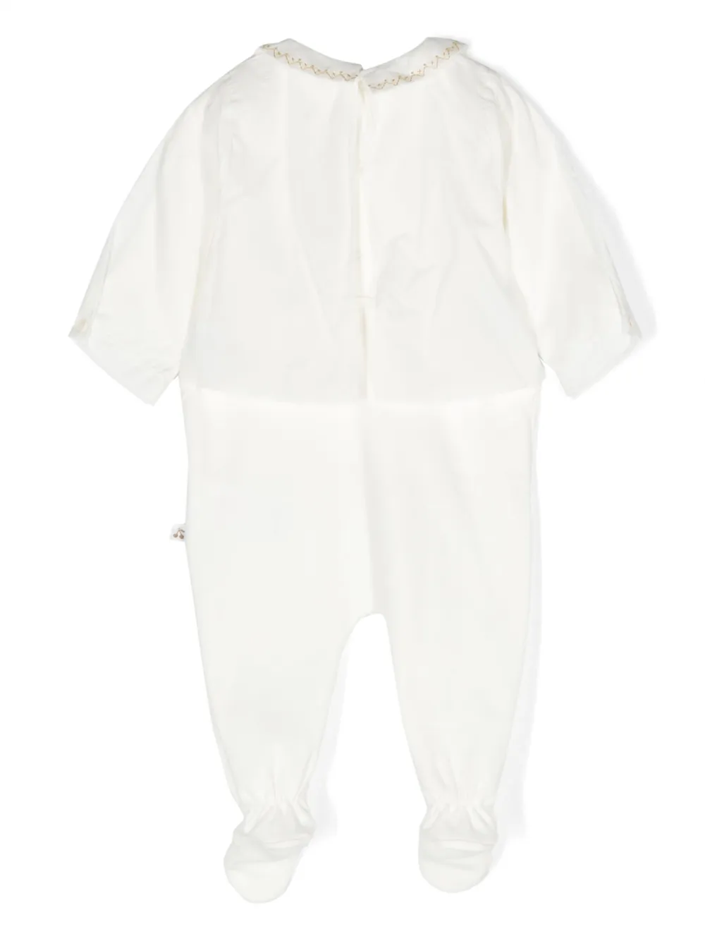 Расцветка Cloud White, хлопок, многослойный дизайн, застежка на кнопках сзади, длинные рукава и пинетки.