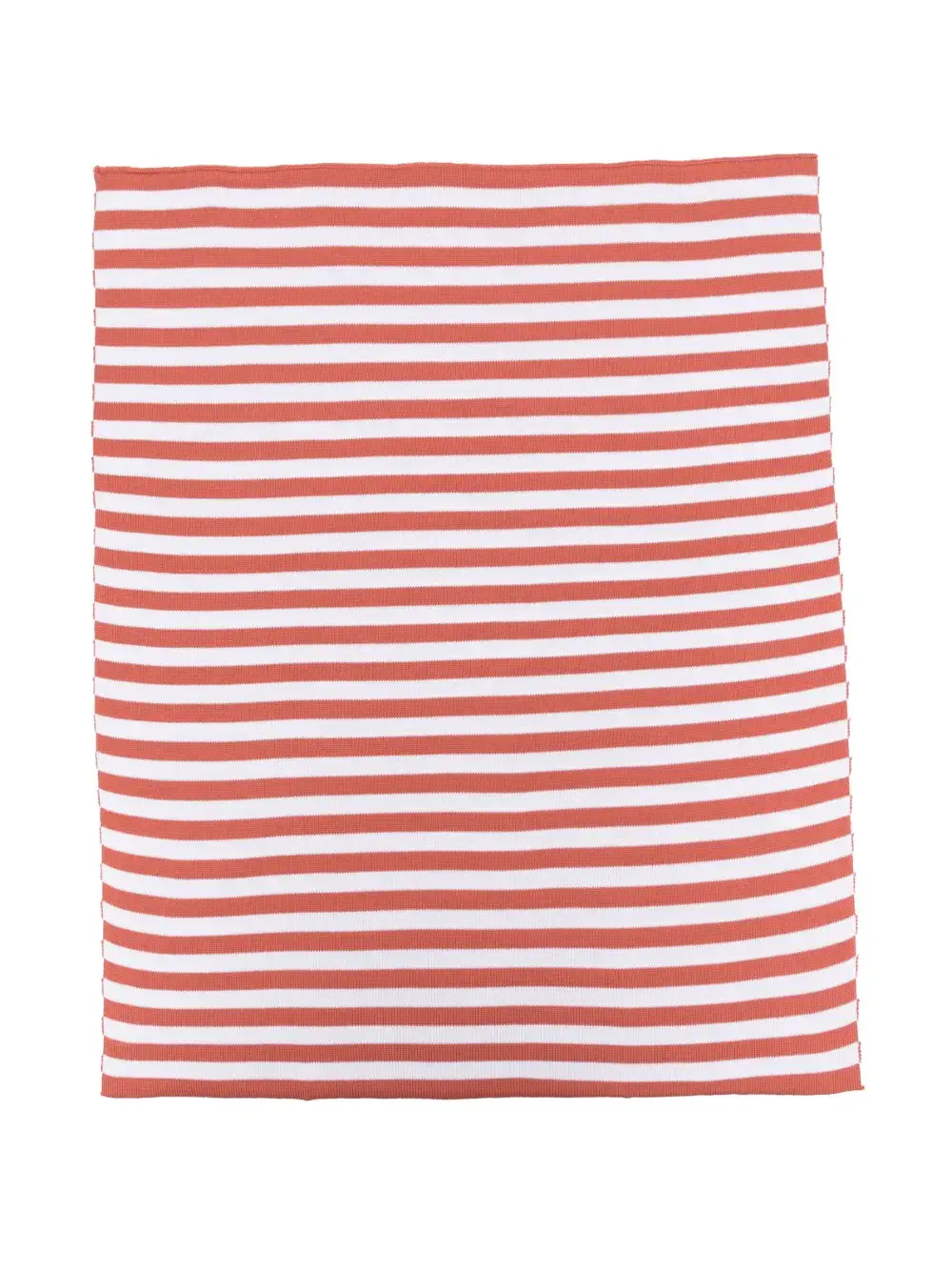 Белый, темно-оранжевый, хлопок, трикотажный материал, узор в горизонтальную полоску и прямоугольная форма.