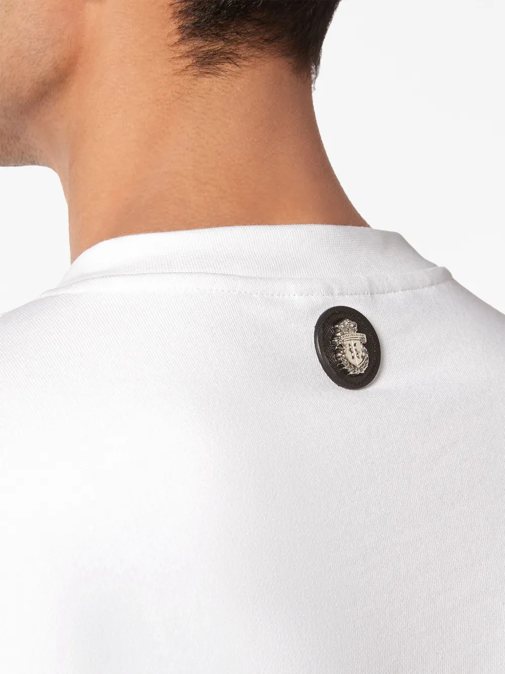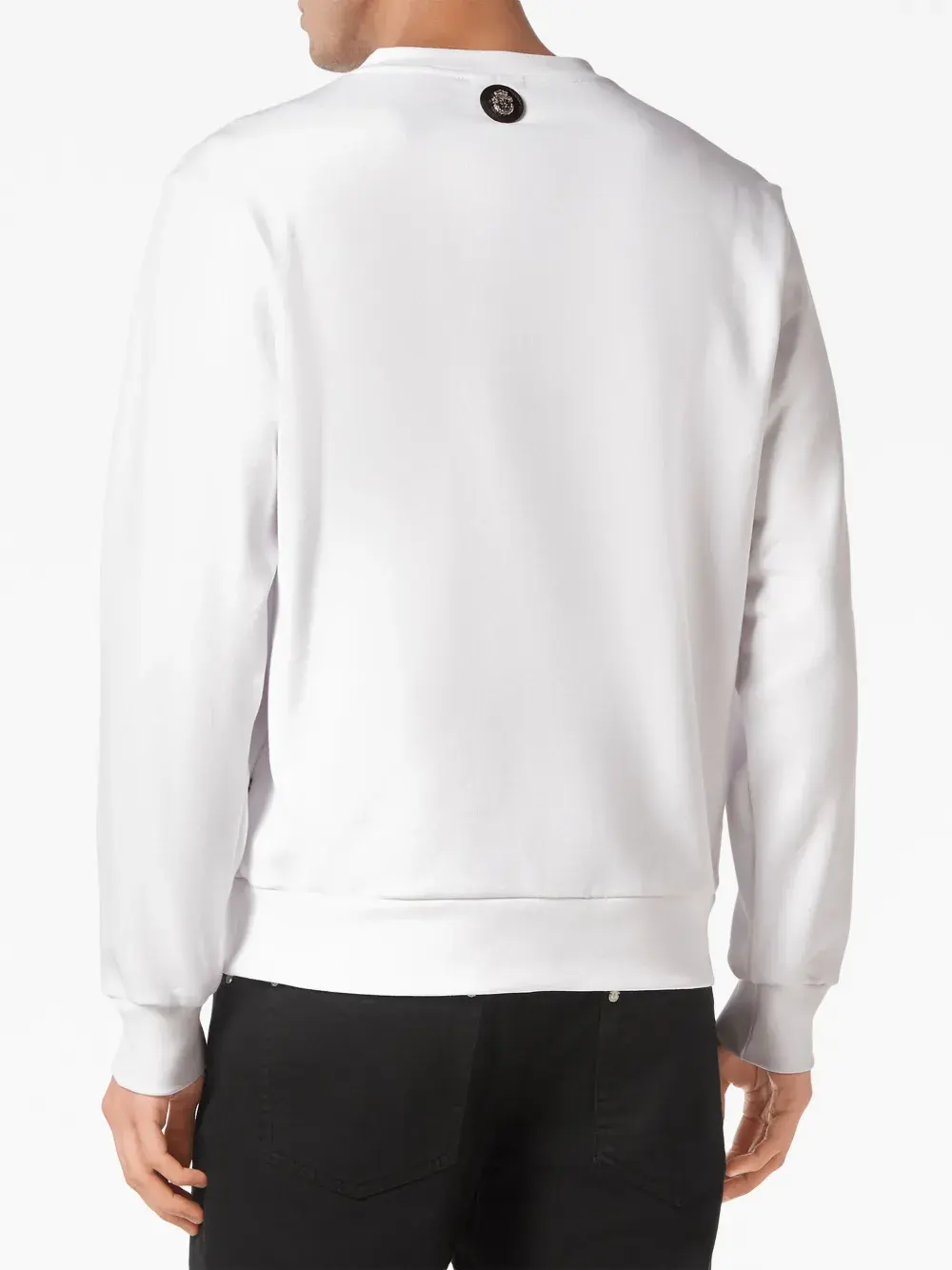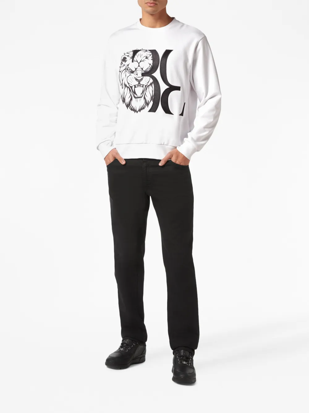 Белый/черный, хлопок, графичный принт спереди, вышитый логотип спереди, металлический логотип, длинные рукава, круглый вырез и прямой подол.