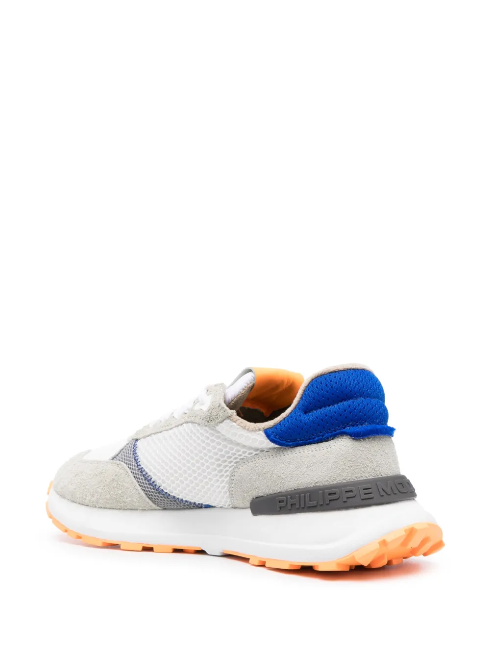 Белый/разноцветный, телячья кожа, вставки, сетка, декоративная строчка, нашивка с логотипом сбоку, нашивка с логотипом на язычке, стелька с логотипом, миндалевидный носок, шнуровка спереди, высота по щиколотку и рифленая резиновая подошва.