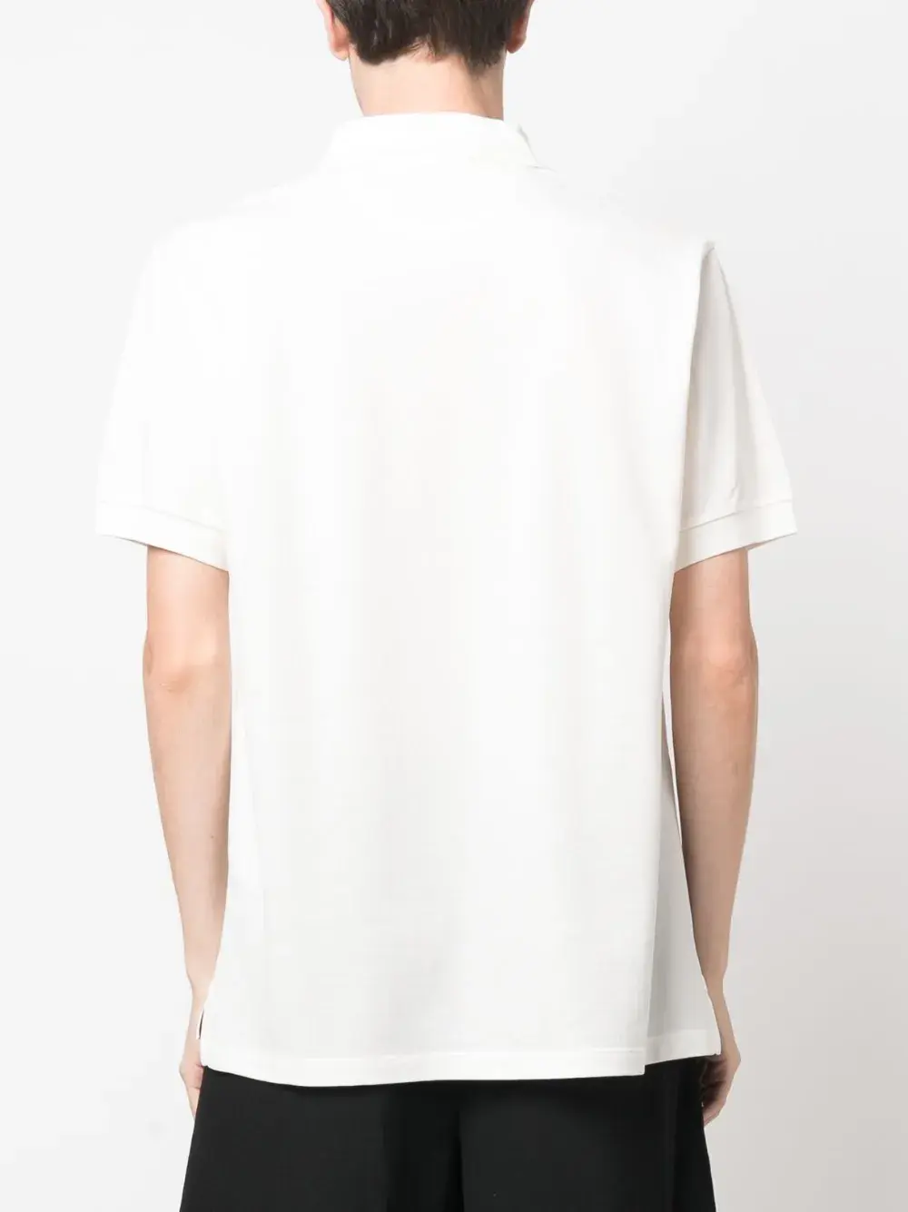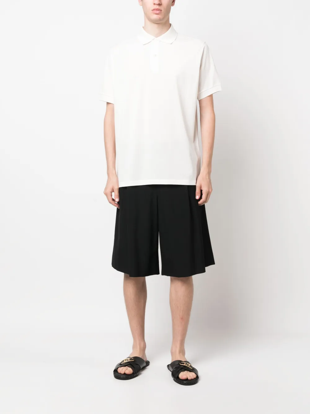 Белый, хлопок, воротник поло, планка на пуговицах спереди, короткие рукава и прямой подол.