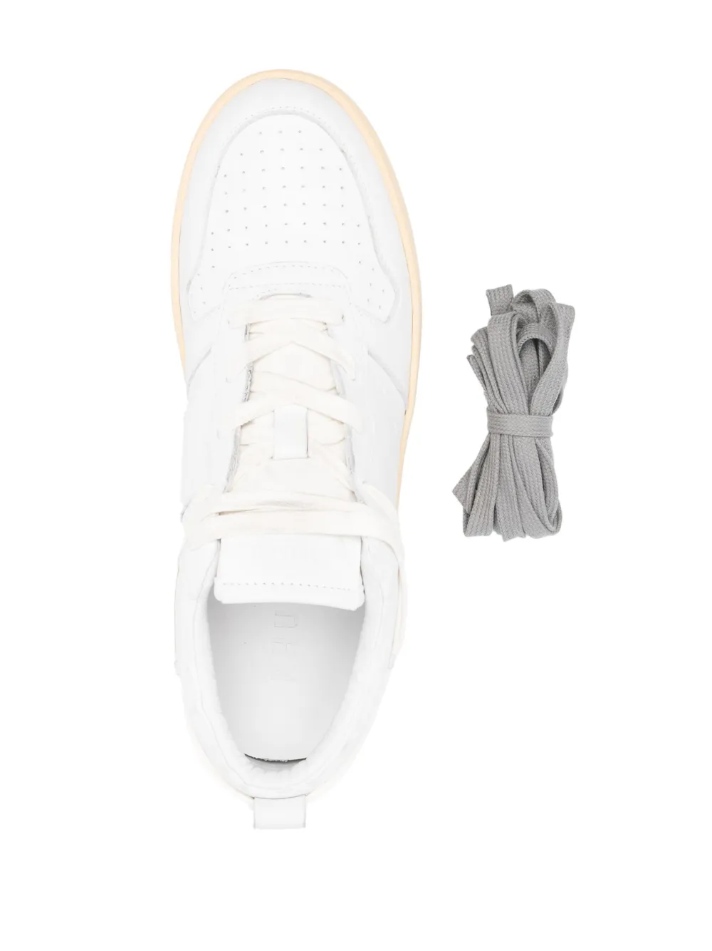 Белый, телячья кожа, вставки, перфорация, сменные шнурки, нашивка с логотипом сзади, нашивка с логотипом на язычке, закругленный носок, шнуровка спереди и плоская резиновая подошва.