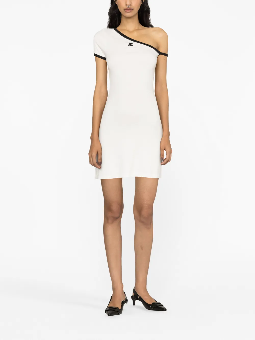 Платье мини асимметричного кроя с нашивкой-логотипом Courrèges, белый