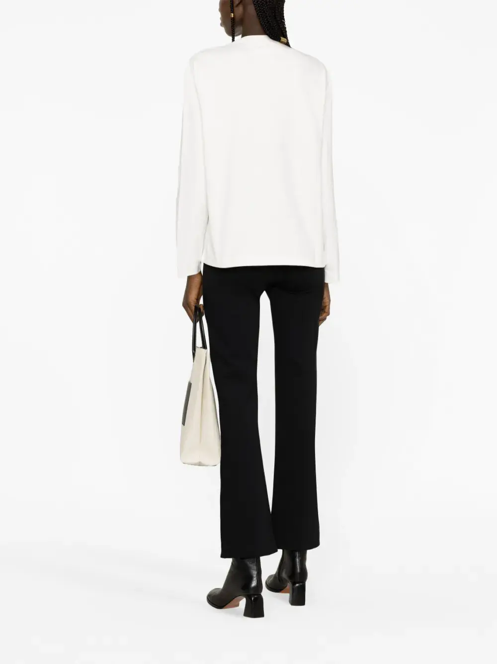 Белый, хлопок, логотип спереди, круглый вырез, длинные рукава и прямой подол.