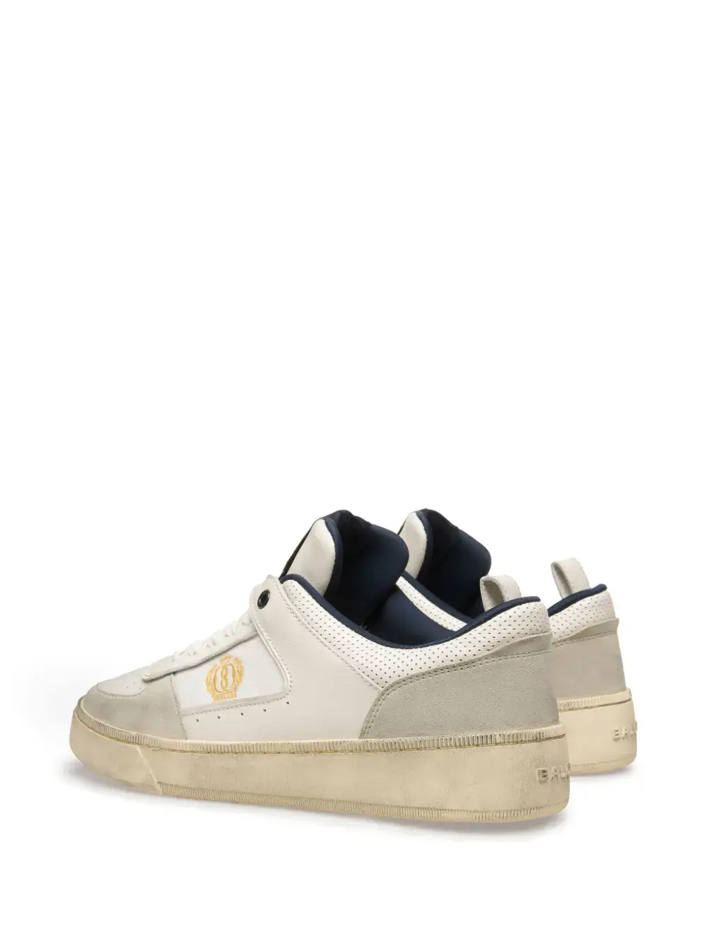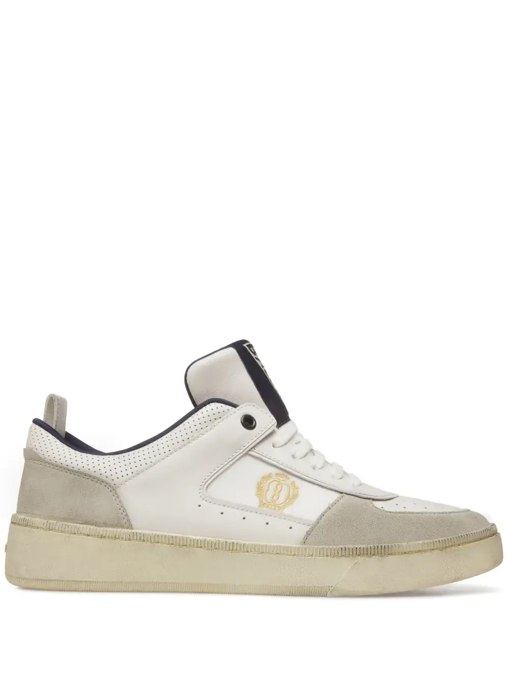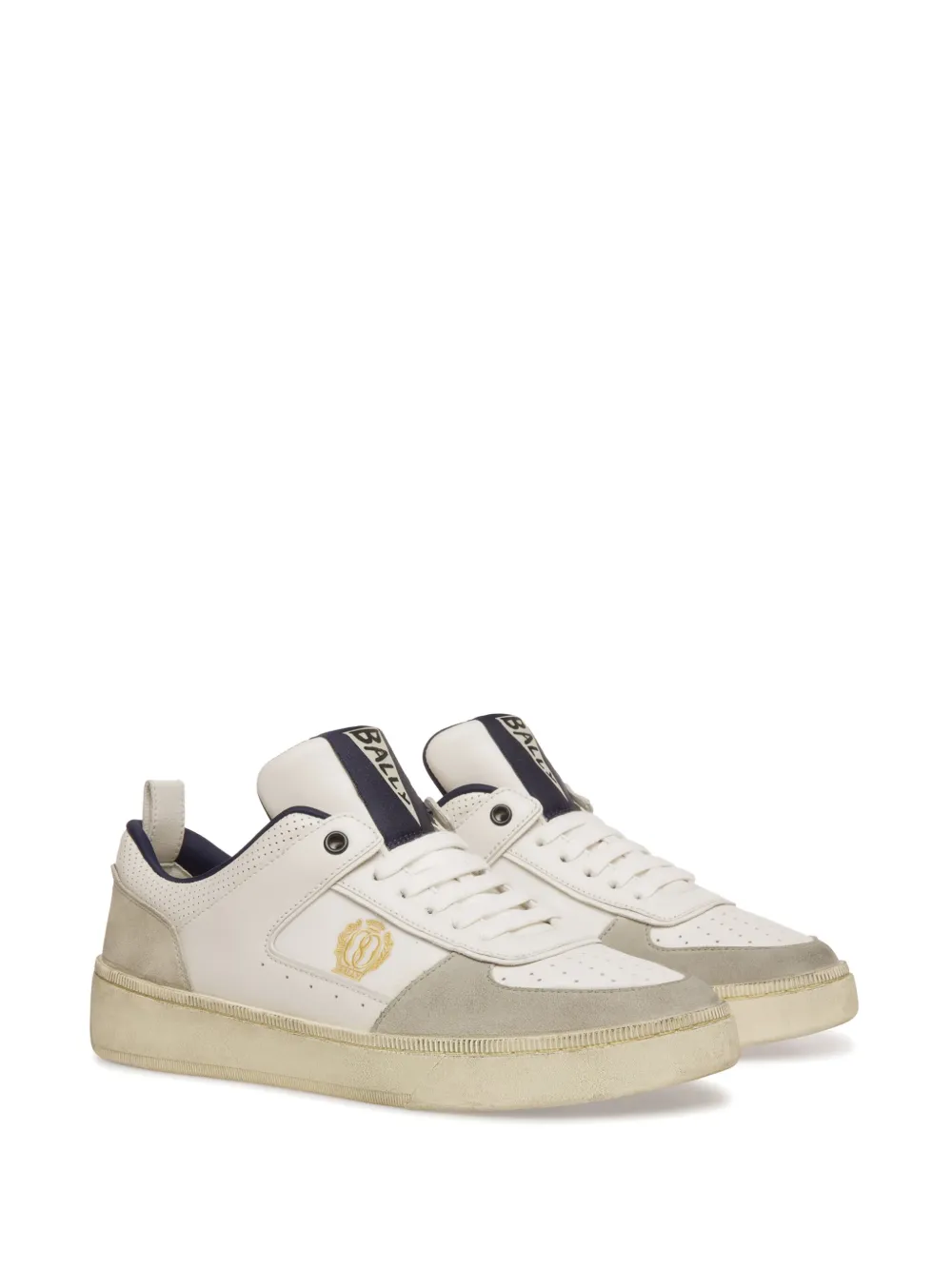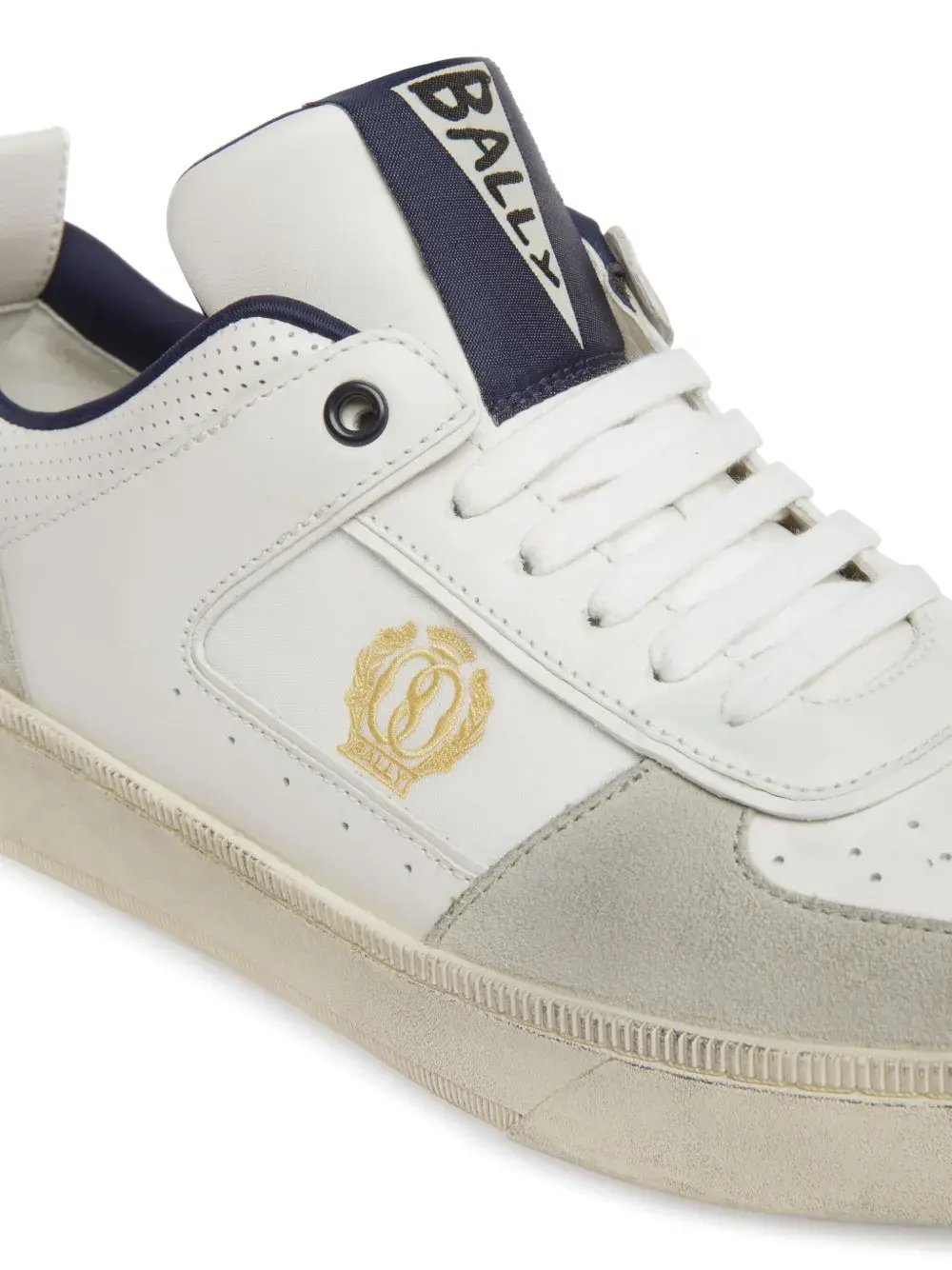 Белый, кожа, замшевые вставки, вышитый логотип сбоку, нашивка с логотипом на язычке, тисненый логотип сзади, перфорация, петля для подтягивания сзади, закругленный носок, шнуровка спереди и плоская резиновая подошва.