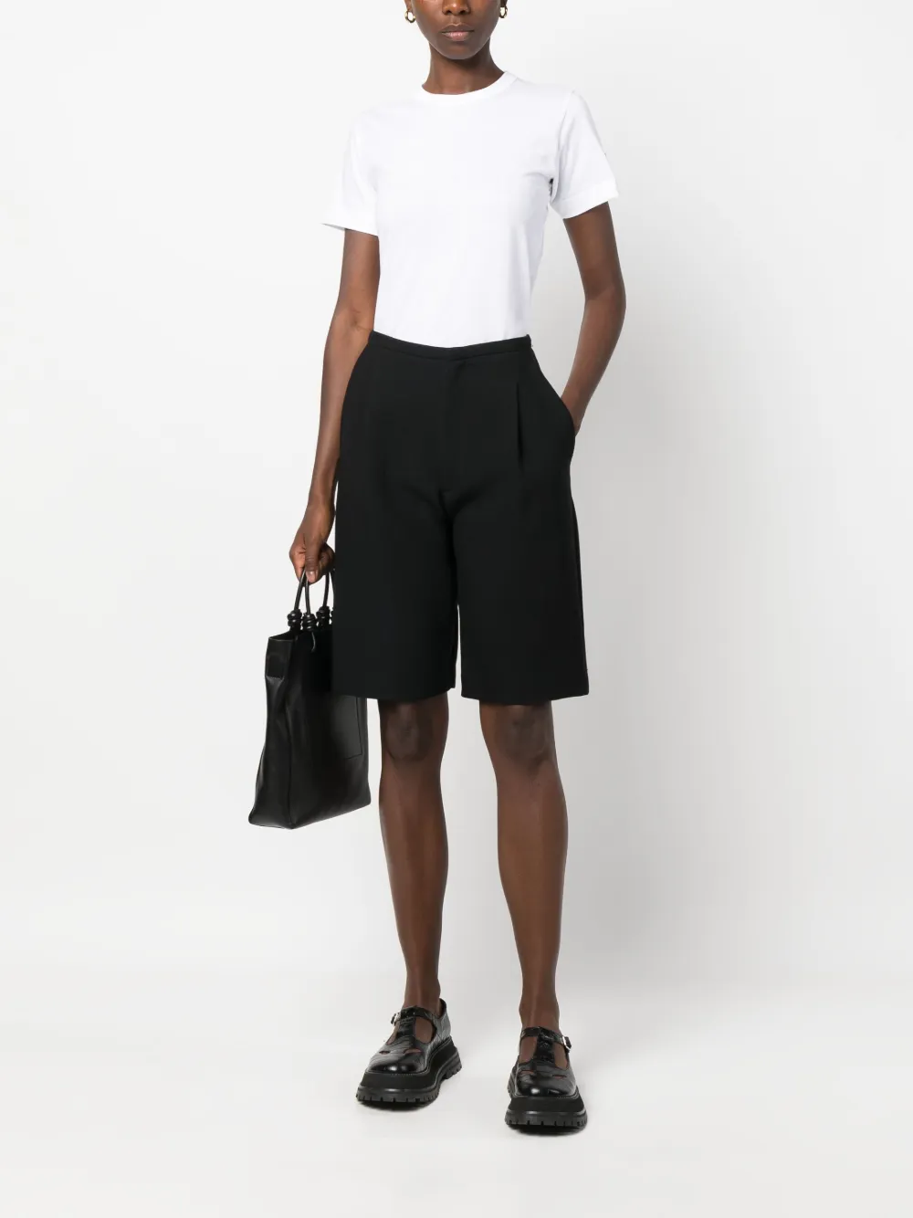 Белый, хлопок, нашивка с логотипом на рукаве, круглый вырез, короткие рукава и прямой подол.