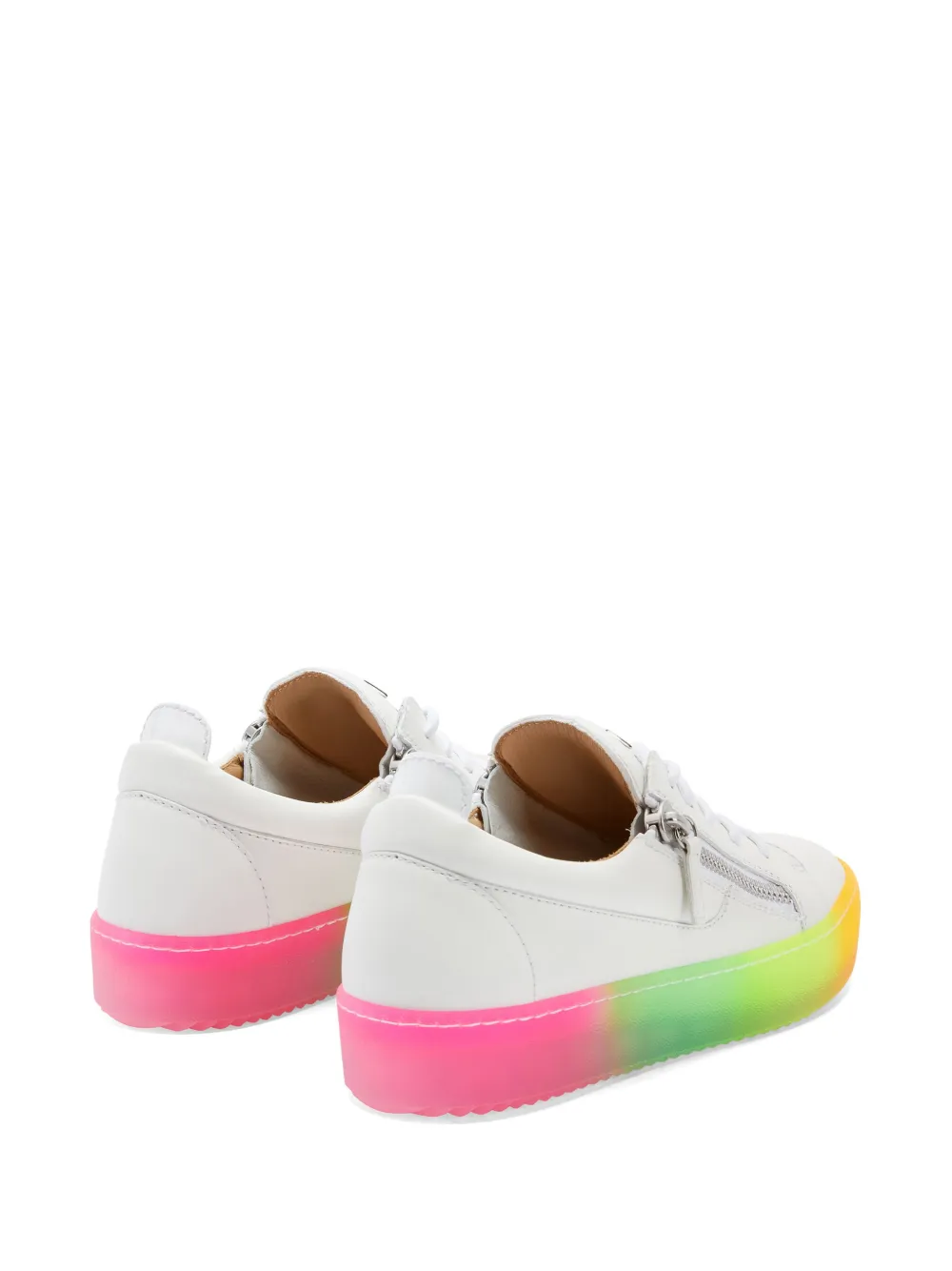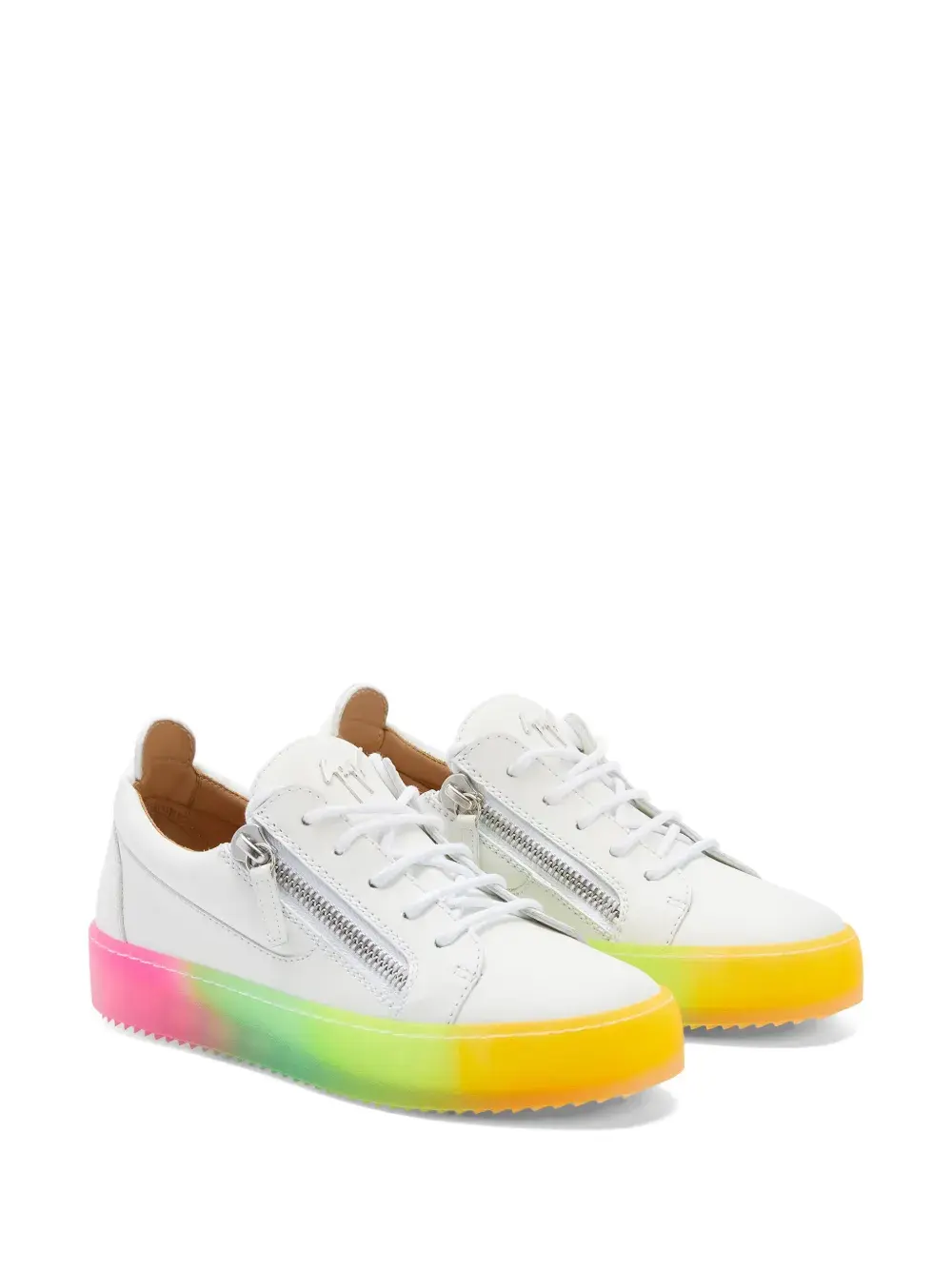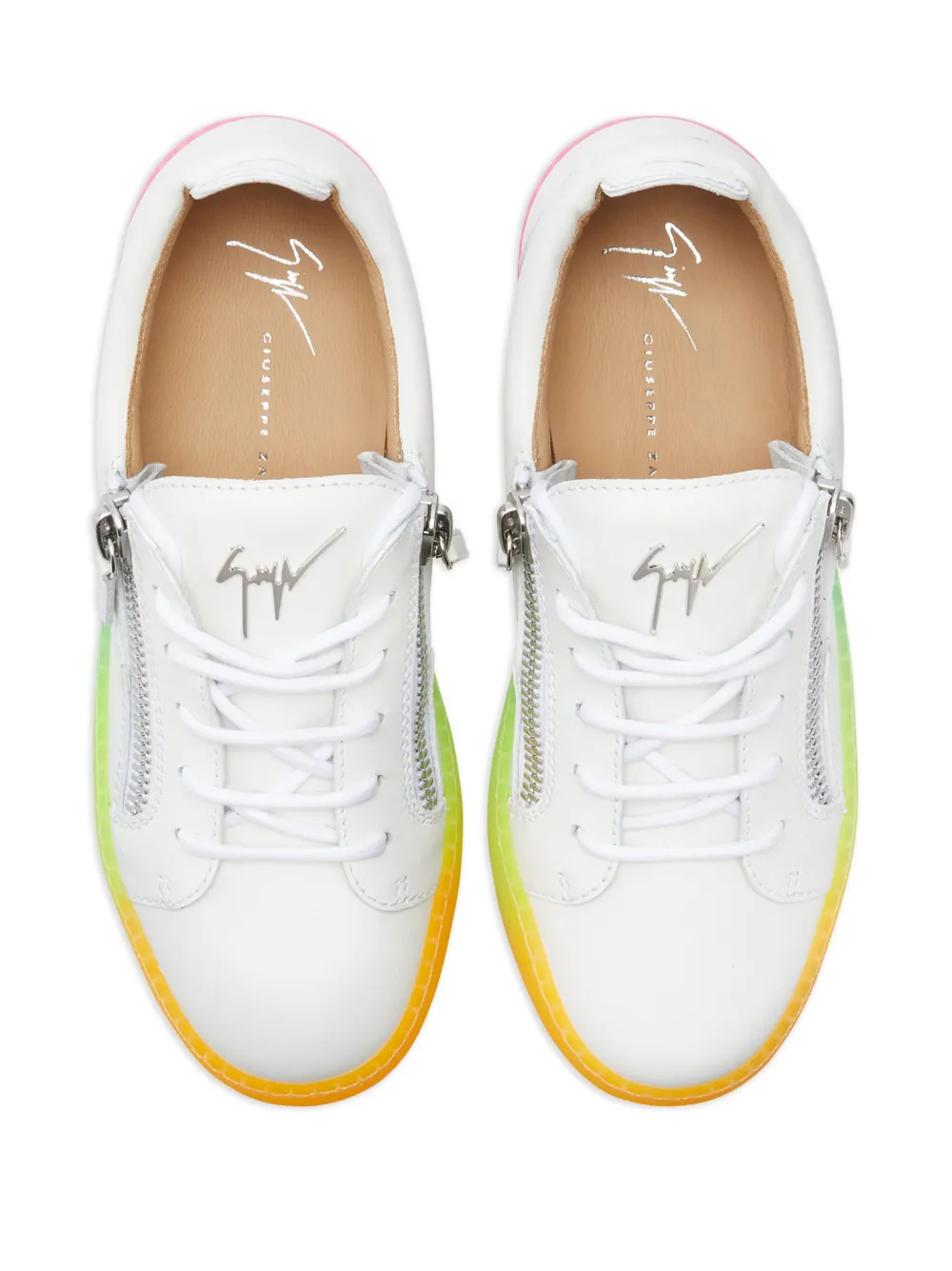 Белый/разноцветный, кожа, нашивка с логотипом на язычке, градиентный эффект, застежка на молнии сбоку, шнуровка спереди, закругленный носок, стелька с логотипом и массивная резиновая подошва.