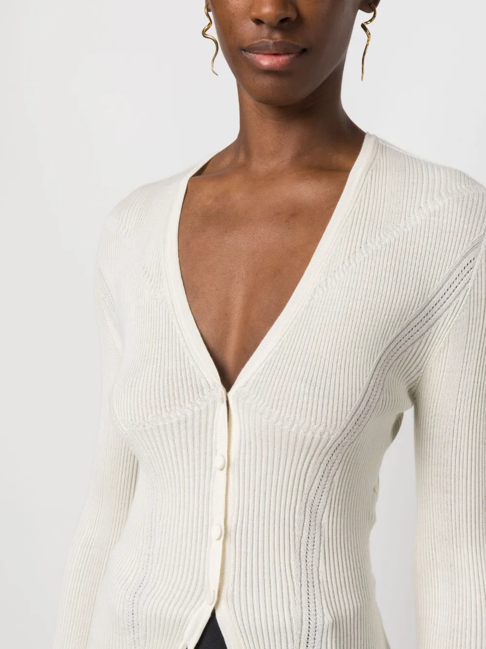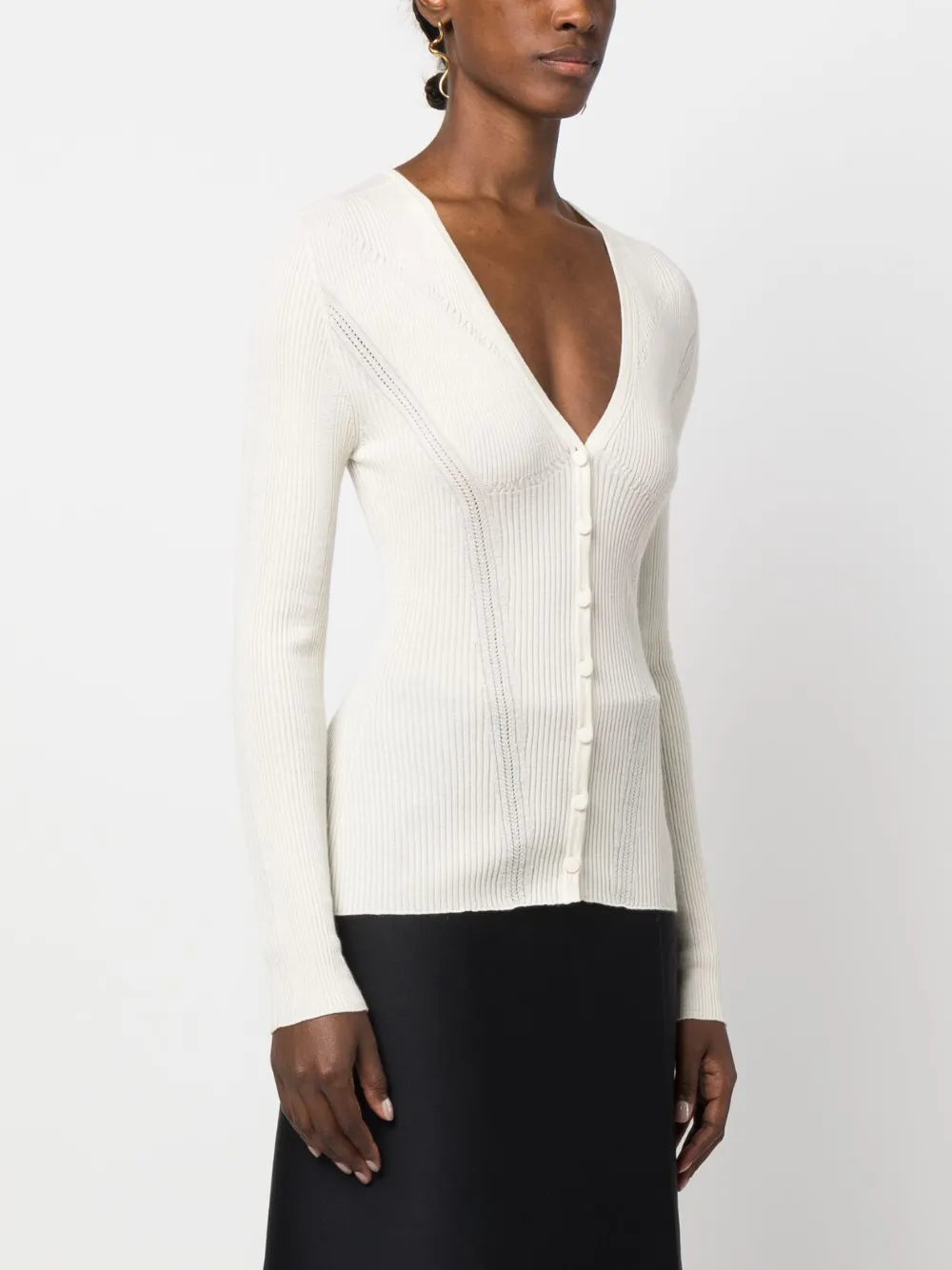 Кардиган в рубчик с V-образным вырезом Lanvin, белый