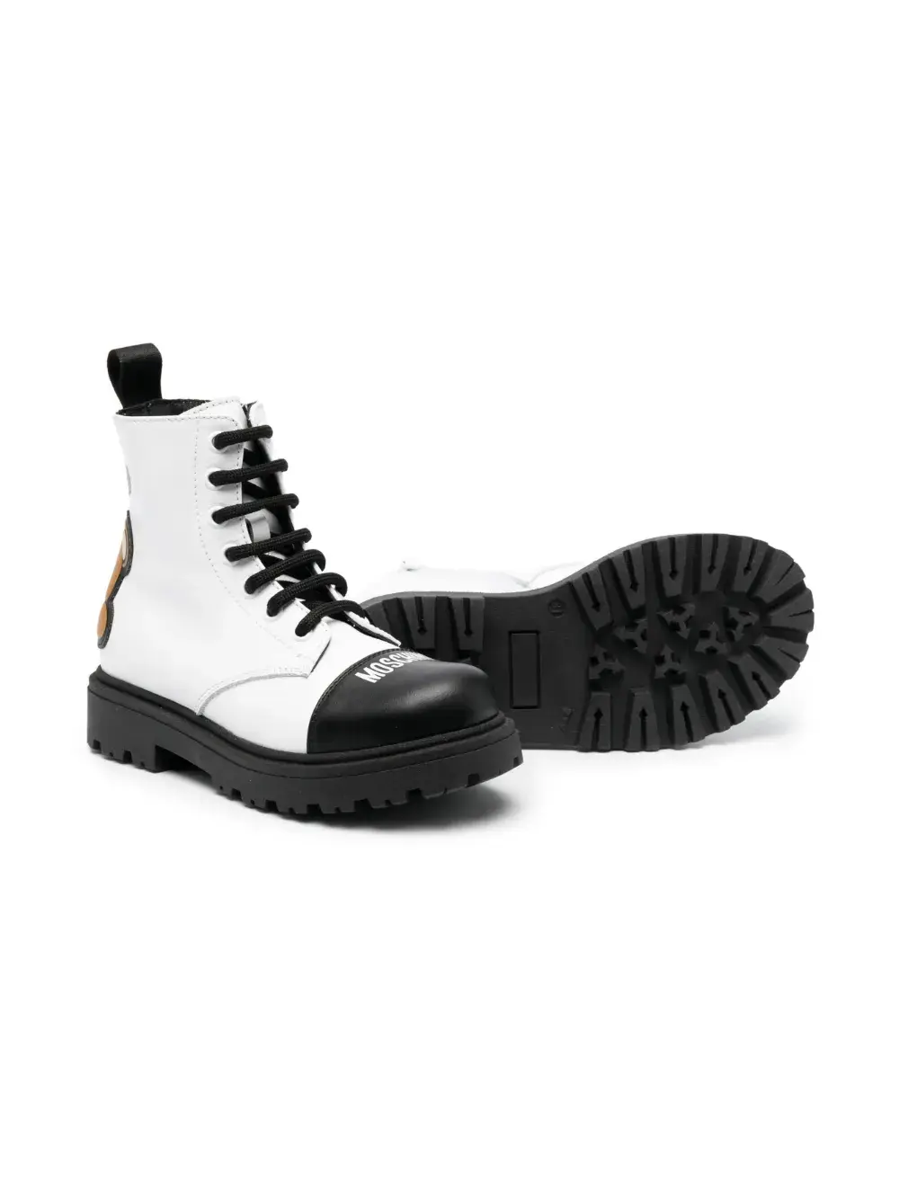 Черный/белый, кожа, сочетание двух оттенков, логотип спереди, декор Teddy Bear, петля для подтягивания сзади, закругленный носок, шнуровка спереди, высота по щиколотку и плоская резиновая подошва.
