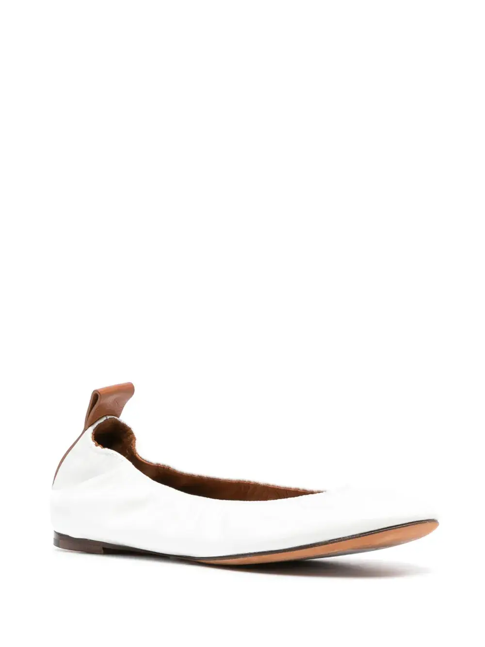 Белый, телячья кожа, лакированная отделка, закругленный носок, кожаная стелька с логотипом, контрастный задник с логотипом, петля для подтягивания сзади и плоская кожаная подошва.