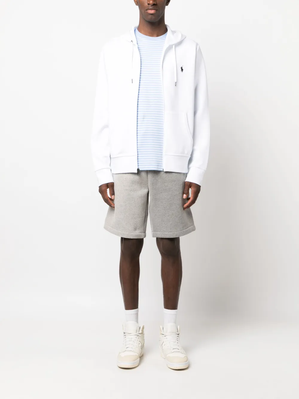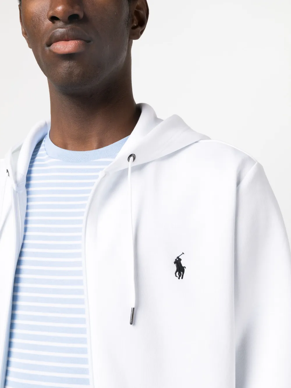 Белый, смесовый хлопок, знаковый логотип Polo Pony, вышитый логотип на груди, затягивающийся на шнурок капюшон, застежка на молнии спереди, два передних кармана и длинные рукава.