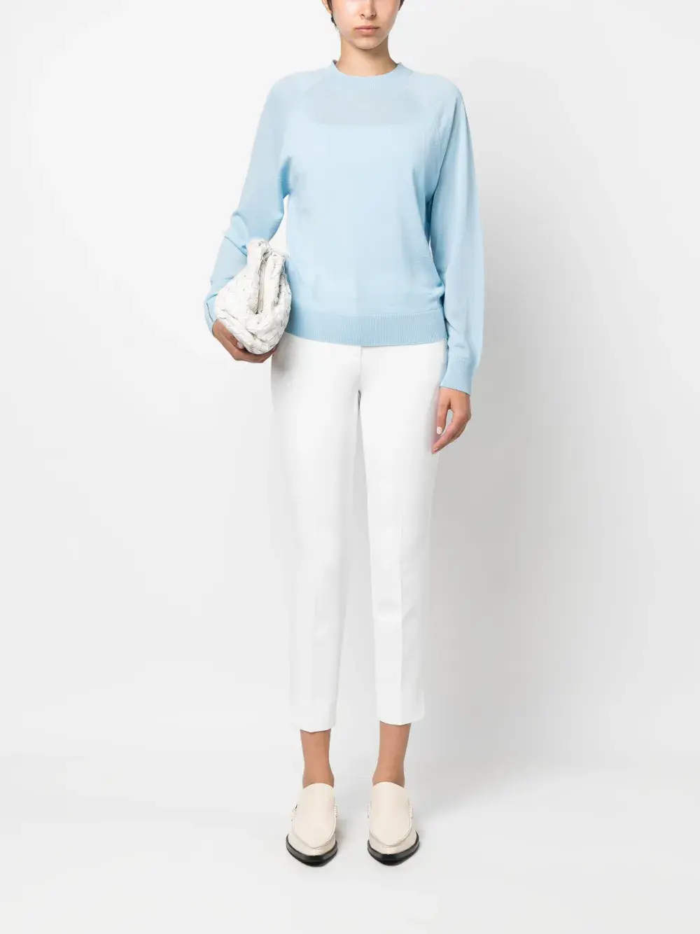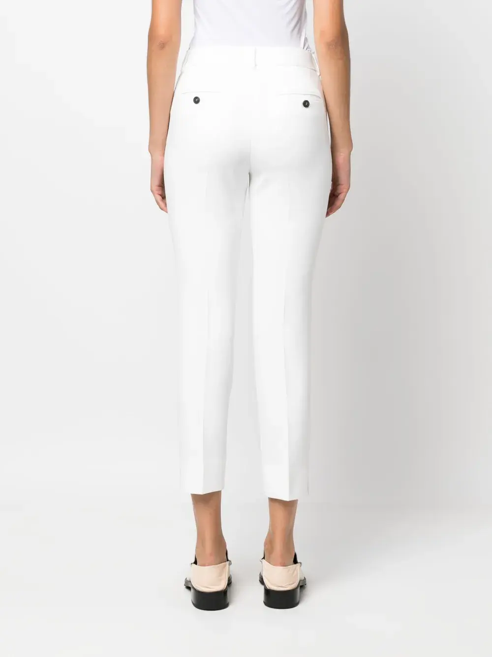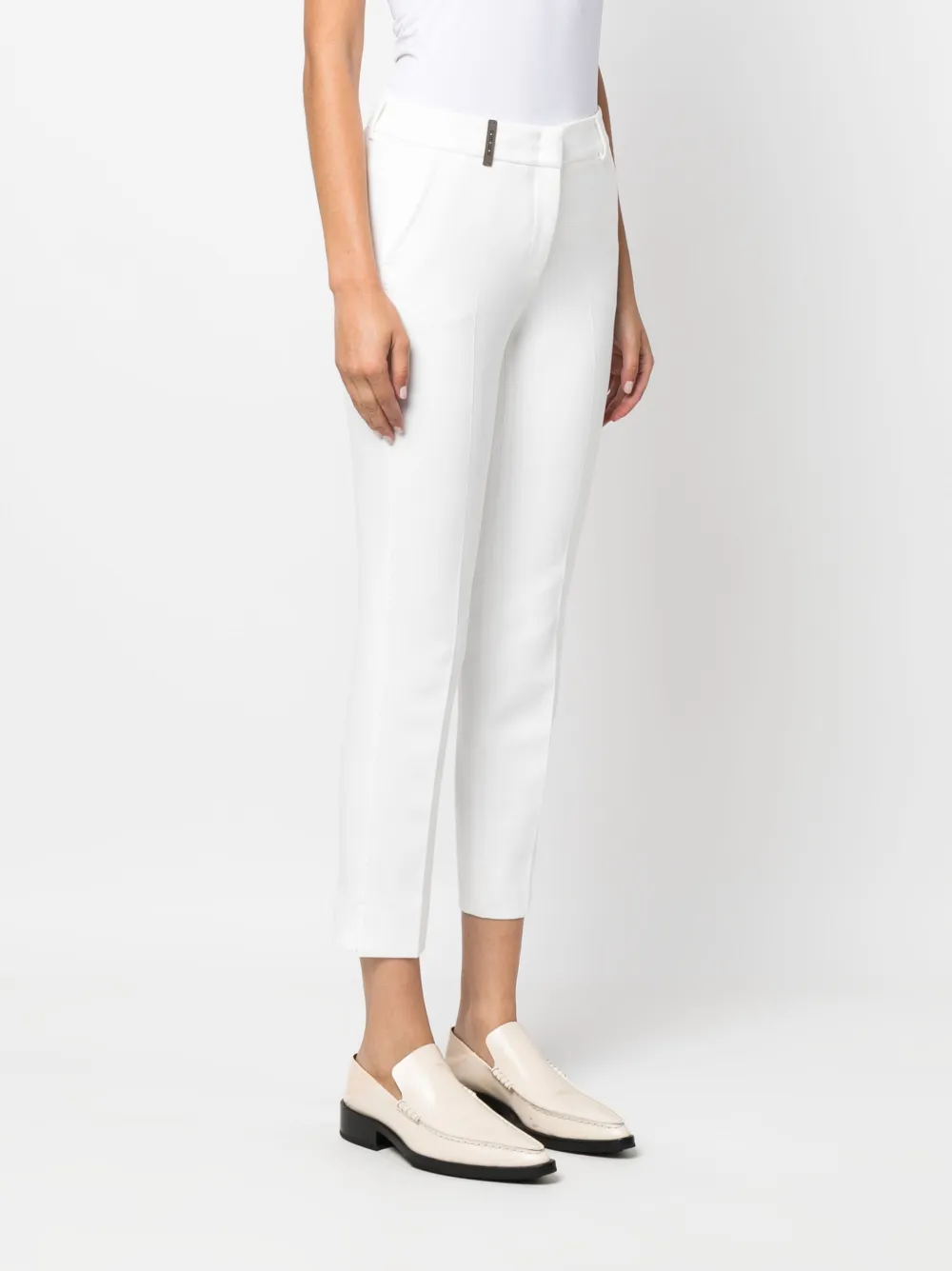 Пряжка с кристаллами, потайная застежка спереди, два вшитых кармана по бокам и два прорезных кармана на пуговицах сзади.
