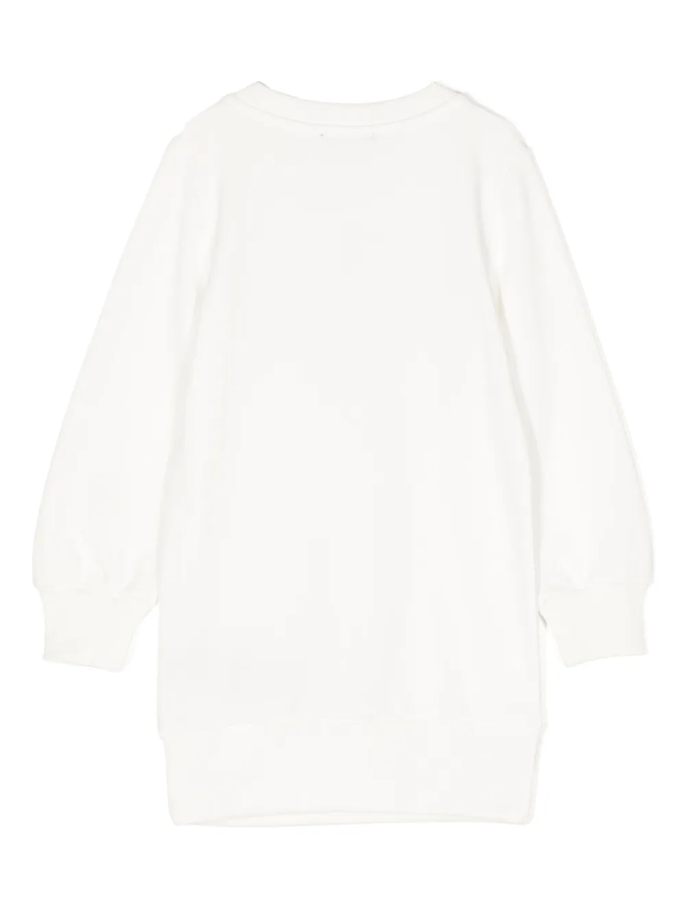 Цвет слоновой кости, хлопок, логотип спереди, круглый вырез, длинные рукава, эластичные манжеты и прямой подол.