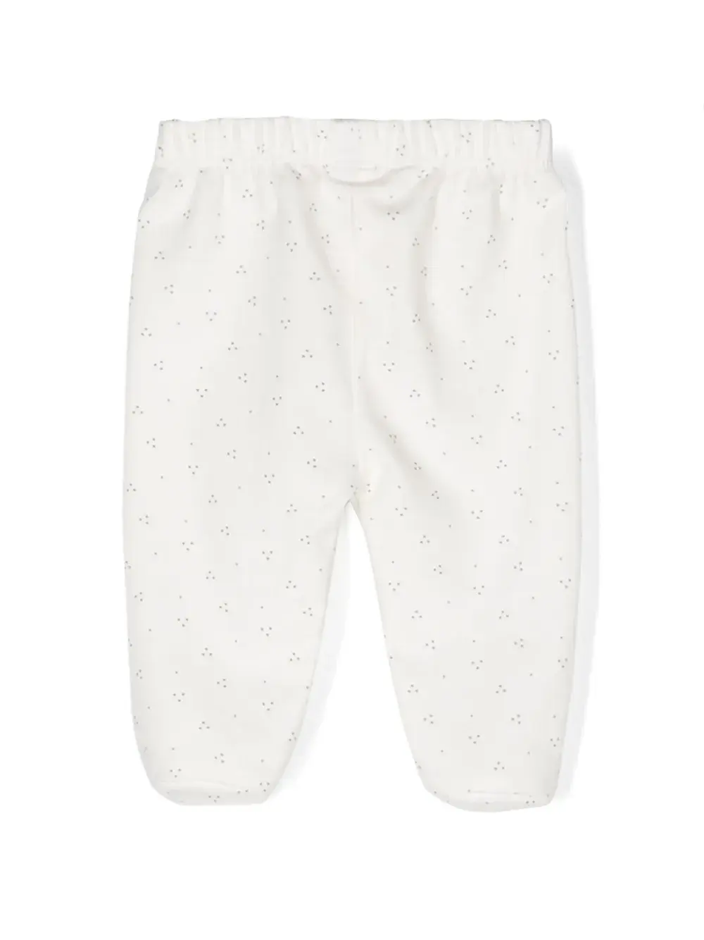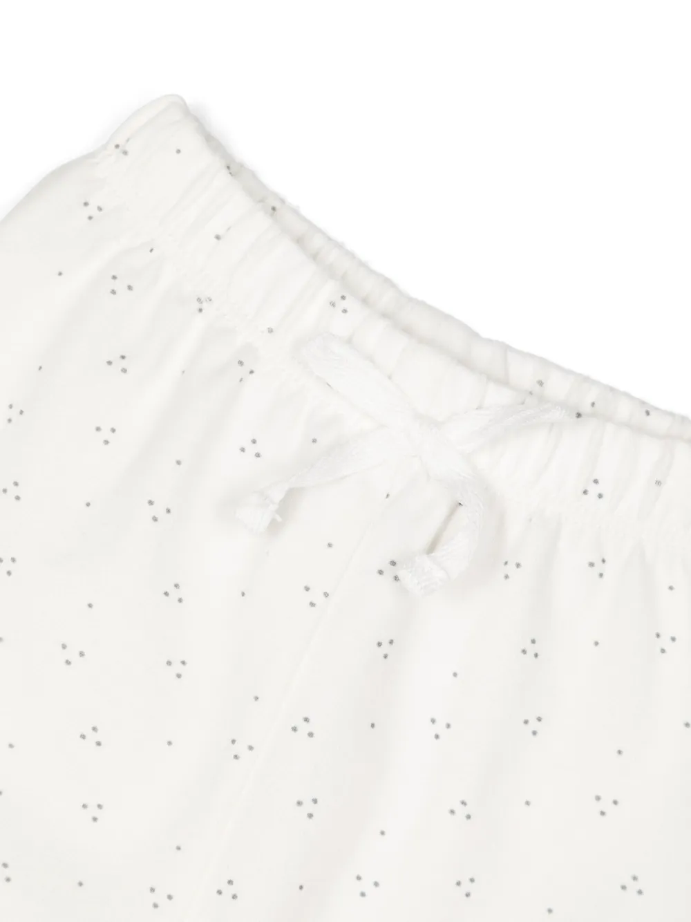 Молочно-белый, серый, эластичный хлопок, принт в мелкую точку, кулиска на талии, прямой крой и длина макси.