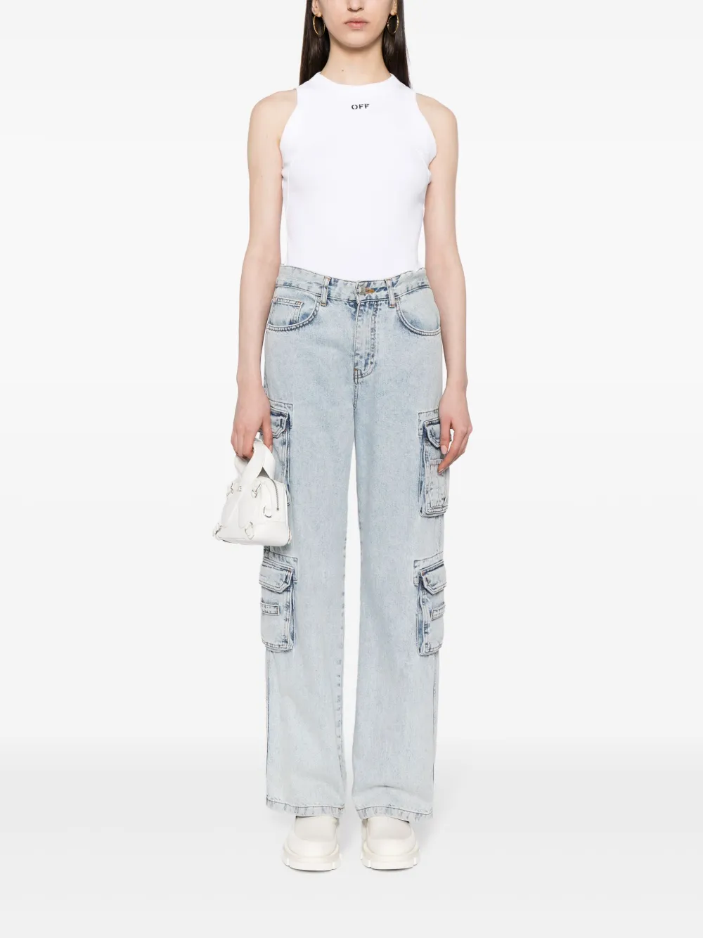 Топ в рубчик с вышитым логотипом OFF-WHITE, белый