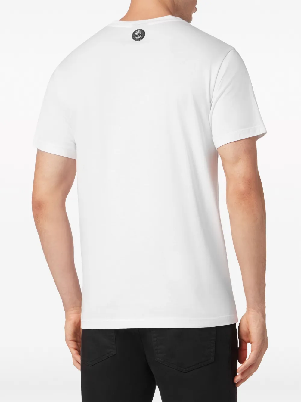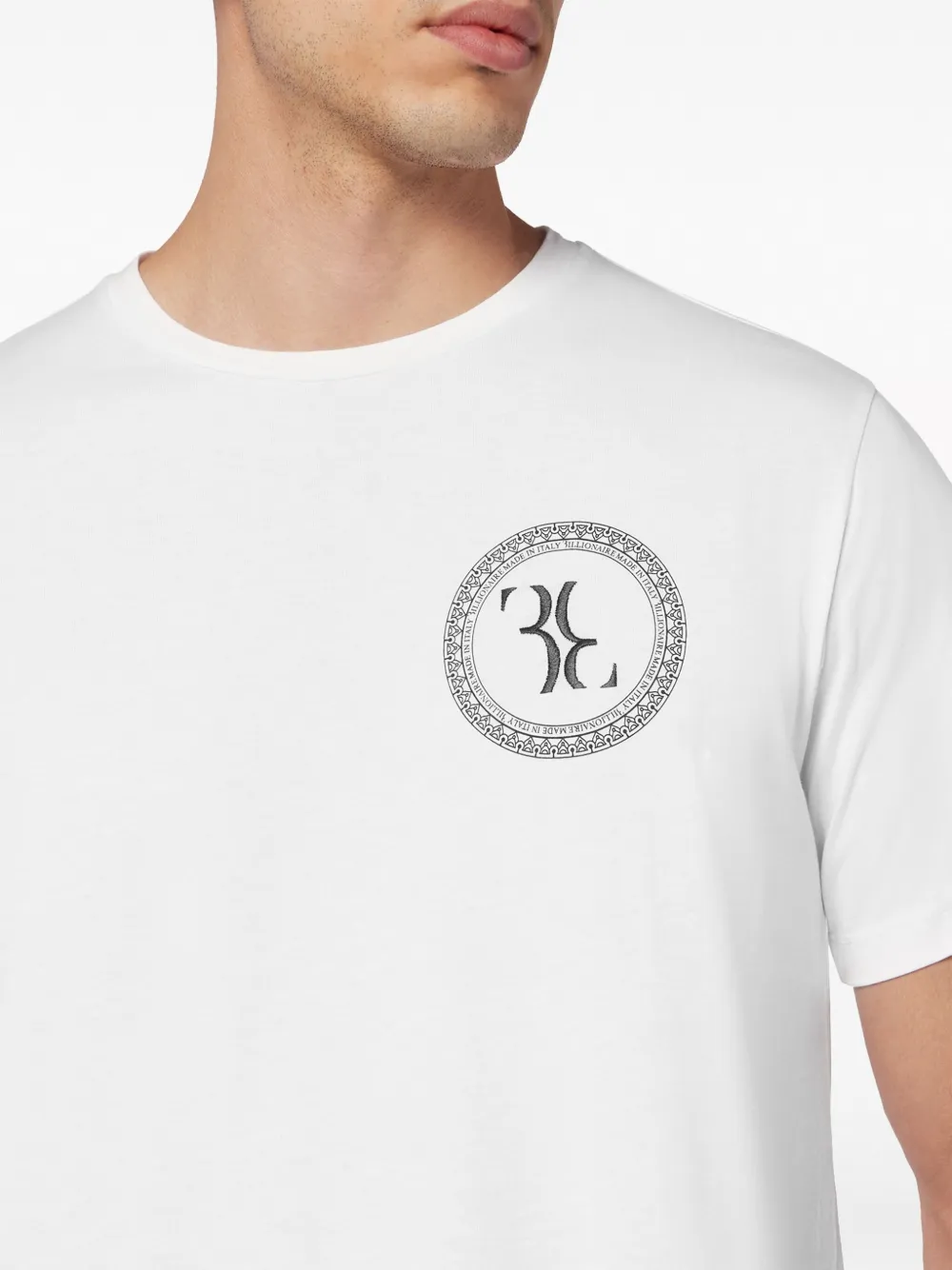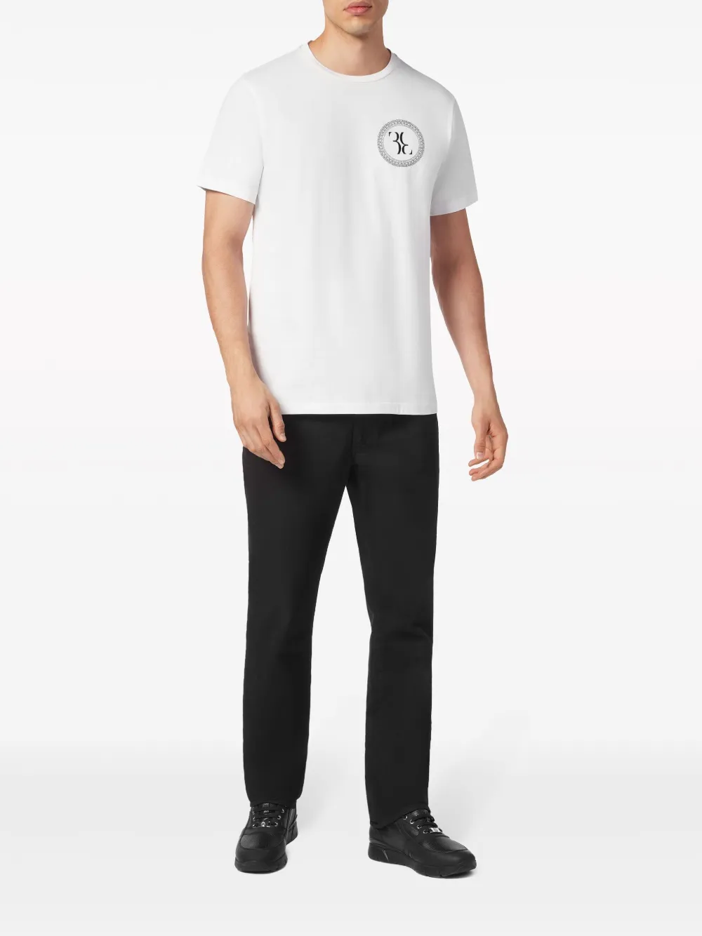 Серовато-белый, хлопок, принт с логотипом на груди, логотип в тон, круглый вырез, короткие рукава и прямой подол.