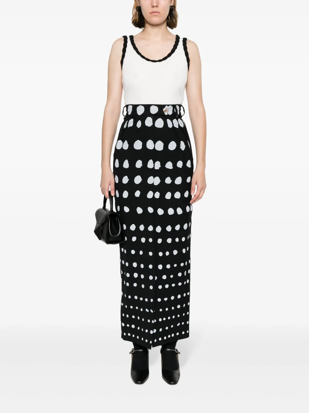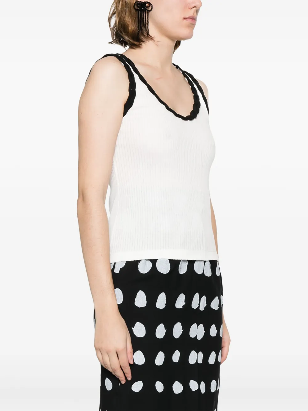 Белый/черный, хлопок, ткань джерси, плетеная отделка, U-образный вырез, без рукавов и прямой подол.
