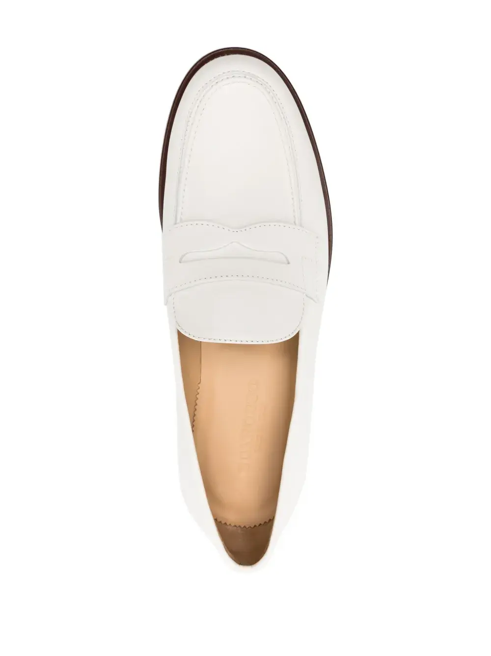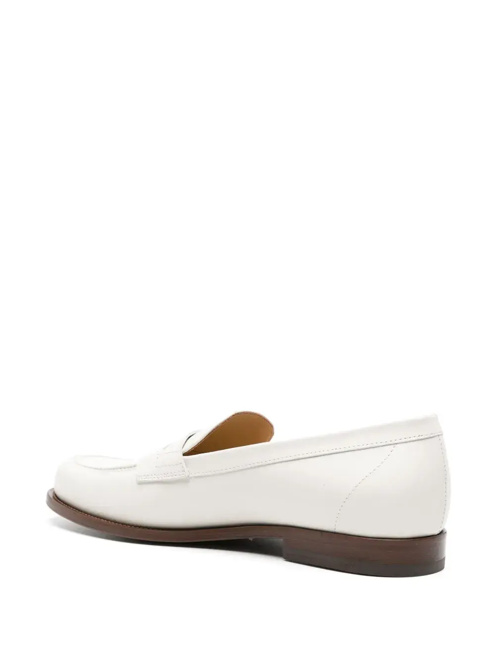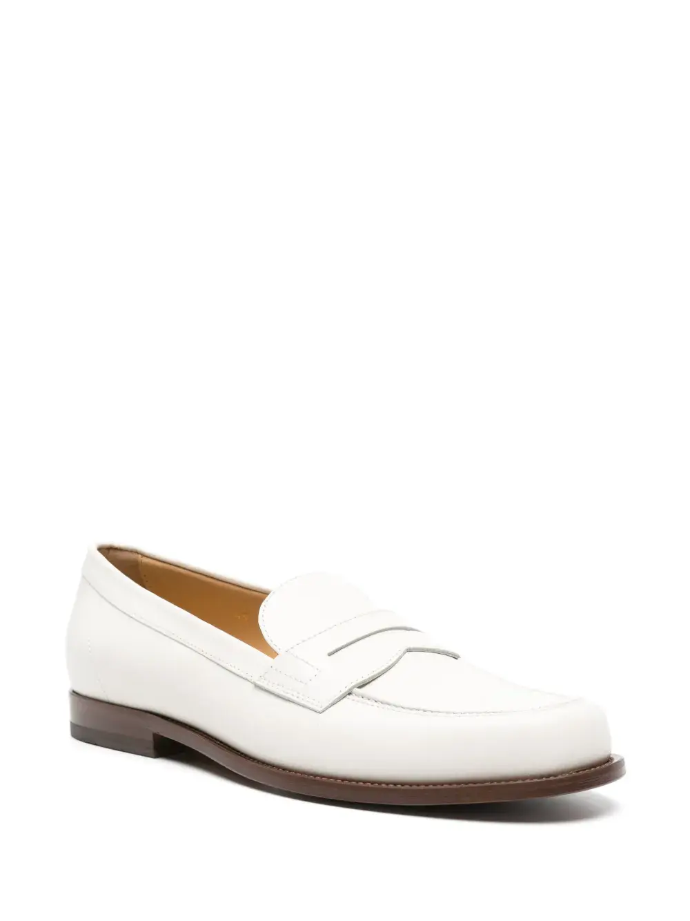 Цвет слоновой кости, телячья кожа, прорези на язычке, миндалевидный носок, кожаная стелька с логотипом и кожаная подошва.