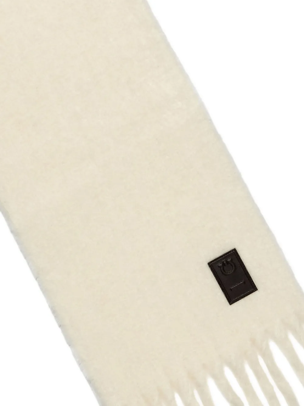 Шарф с бахромой и нашивкой-логотипом Ferragamo, белый