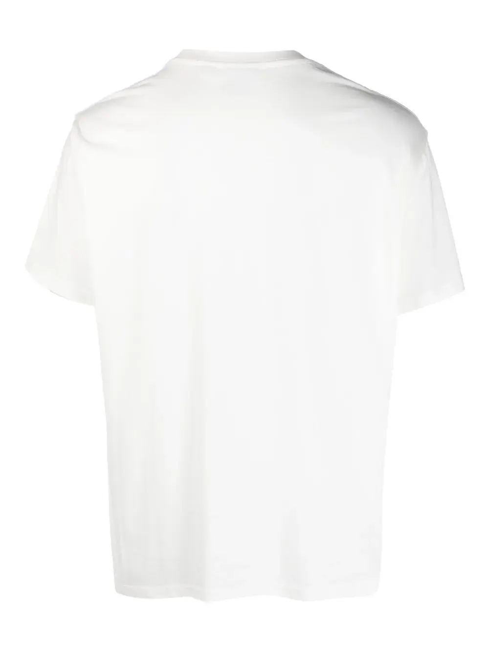 Белый, хлопок, принт с надписью спереди, фотопринт, круглый вырез, короткие рукава и прямой подол.