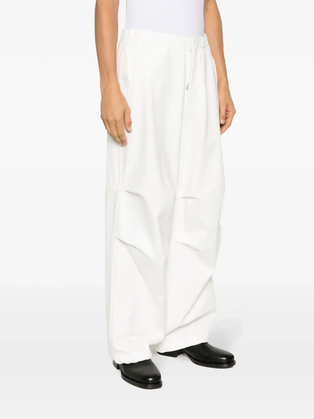 Белый, хлопок, эластичный пояс, прямой крой, потайная застежка спереди и прямой подол.