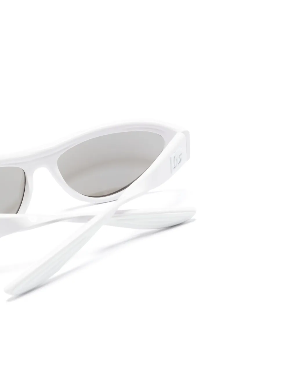 Белый, ацетат, оправа с боковой защитой, затемненные линзы, логотип в тон, прямые дужки и дужки с закругленными концами. В комплект входит защитный чехол для очков.