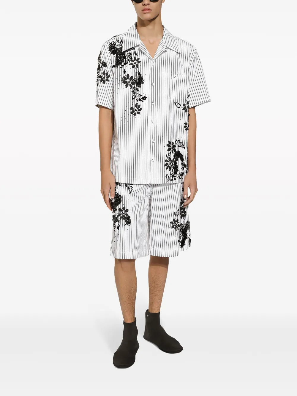 Полосатая рубашка с цветочным принтом DOLCE & GABBANA, белый