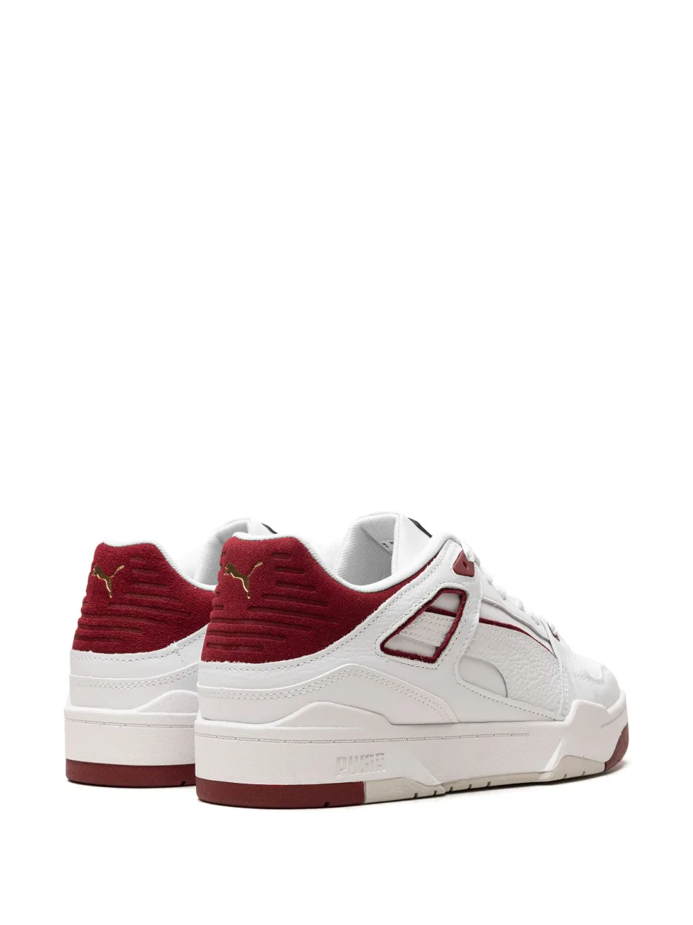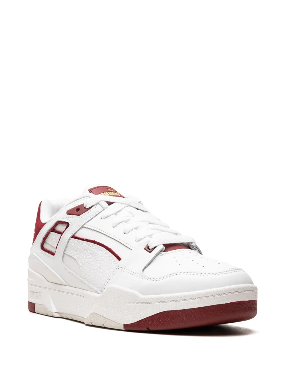 Белый, красный, телячья кожа, перфорация, контрастная отделка, закругленный носок, шнуровка спереди, нашивка с логотипом на язычке, стелька с логотипом и плоская кожаная подошва.