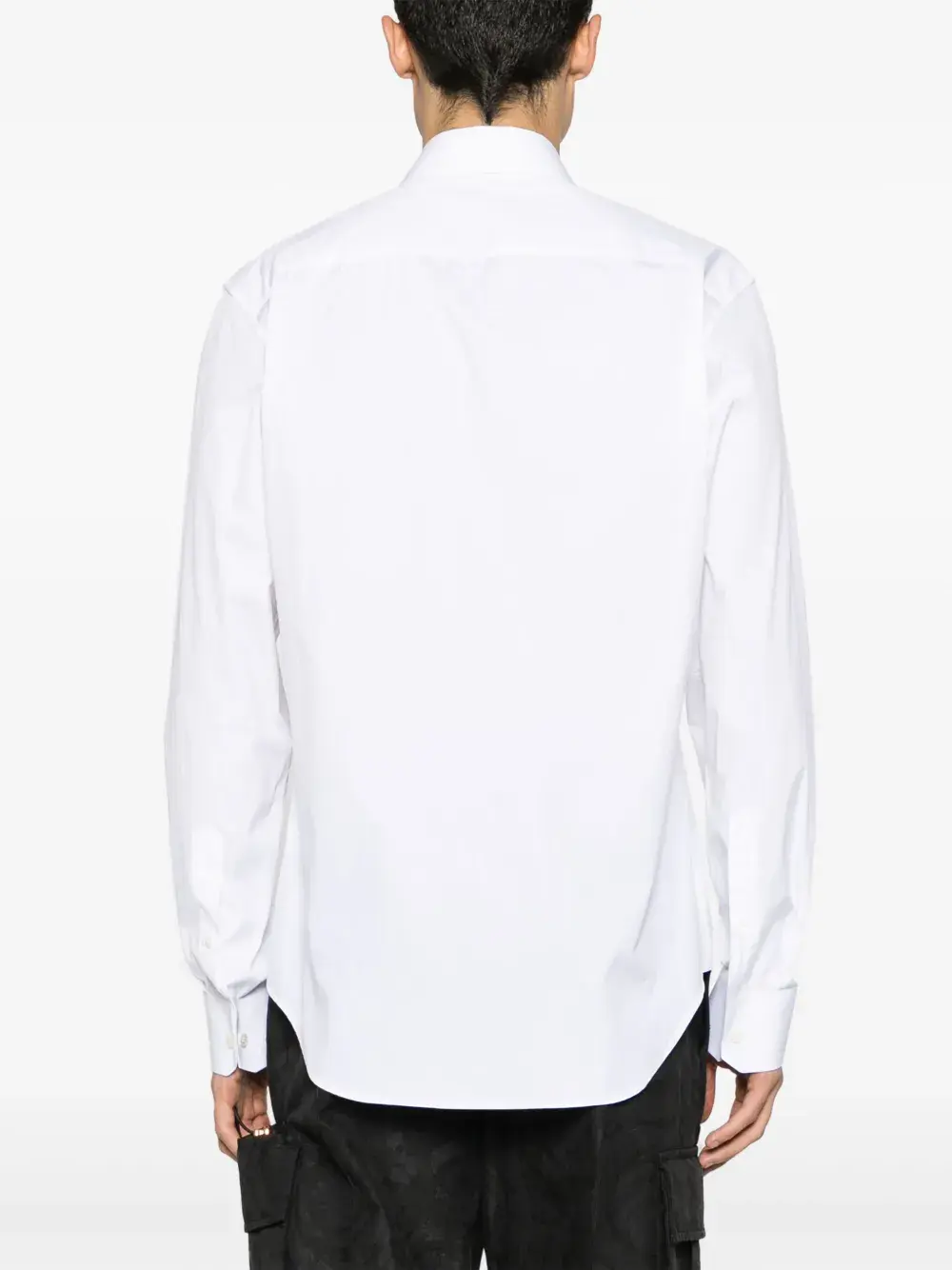 Белый, хлопок, поплин, знаковый принт Barocco, вышитый узор, классический воротник, потайная пуговичная застежка спереди, длинные рукава, манжеты на пуговицах и закругленный подол сзади.