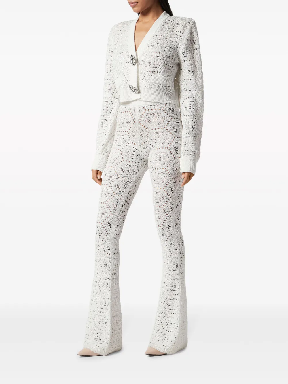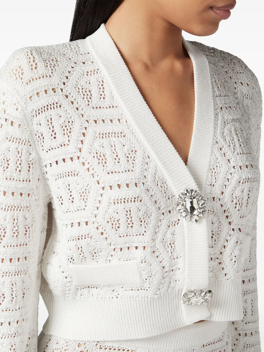 Кардиган в технике кроше с монограммой Philipp Plein, белый