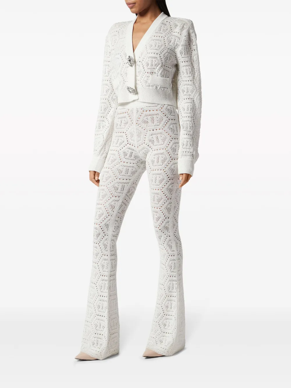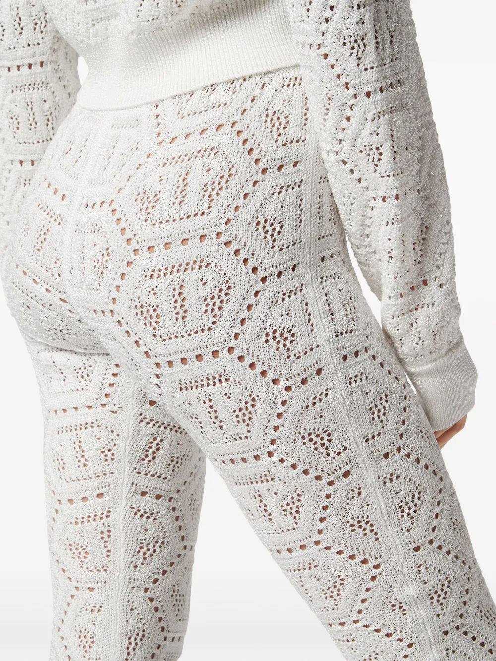 Трикотажные брюки с люрексом и монограммой Philipp Plein, белый