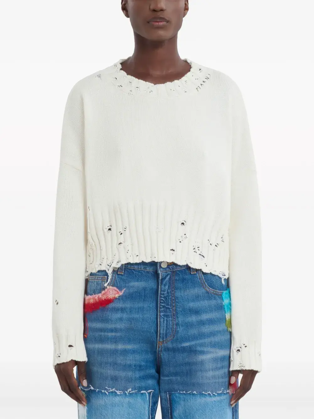 Джемпер в рубчик с эффектом потертости Marni, белый