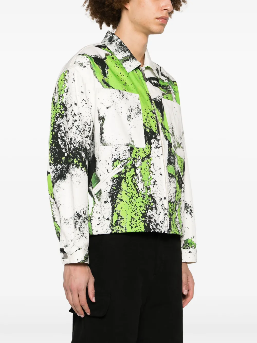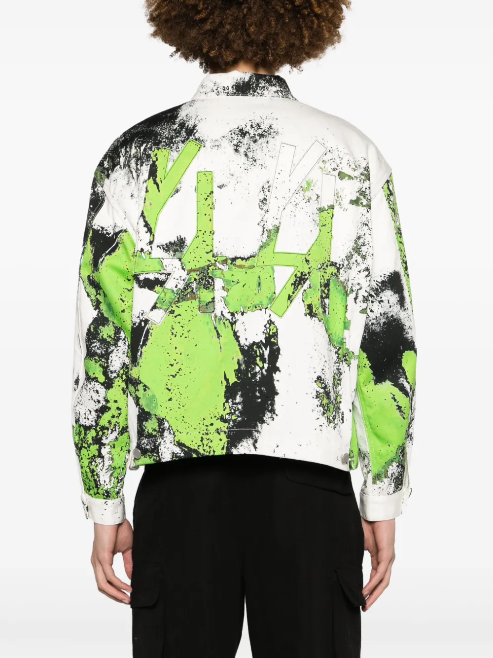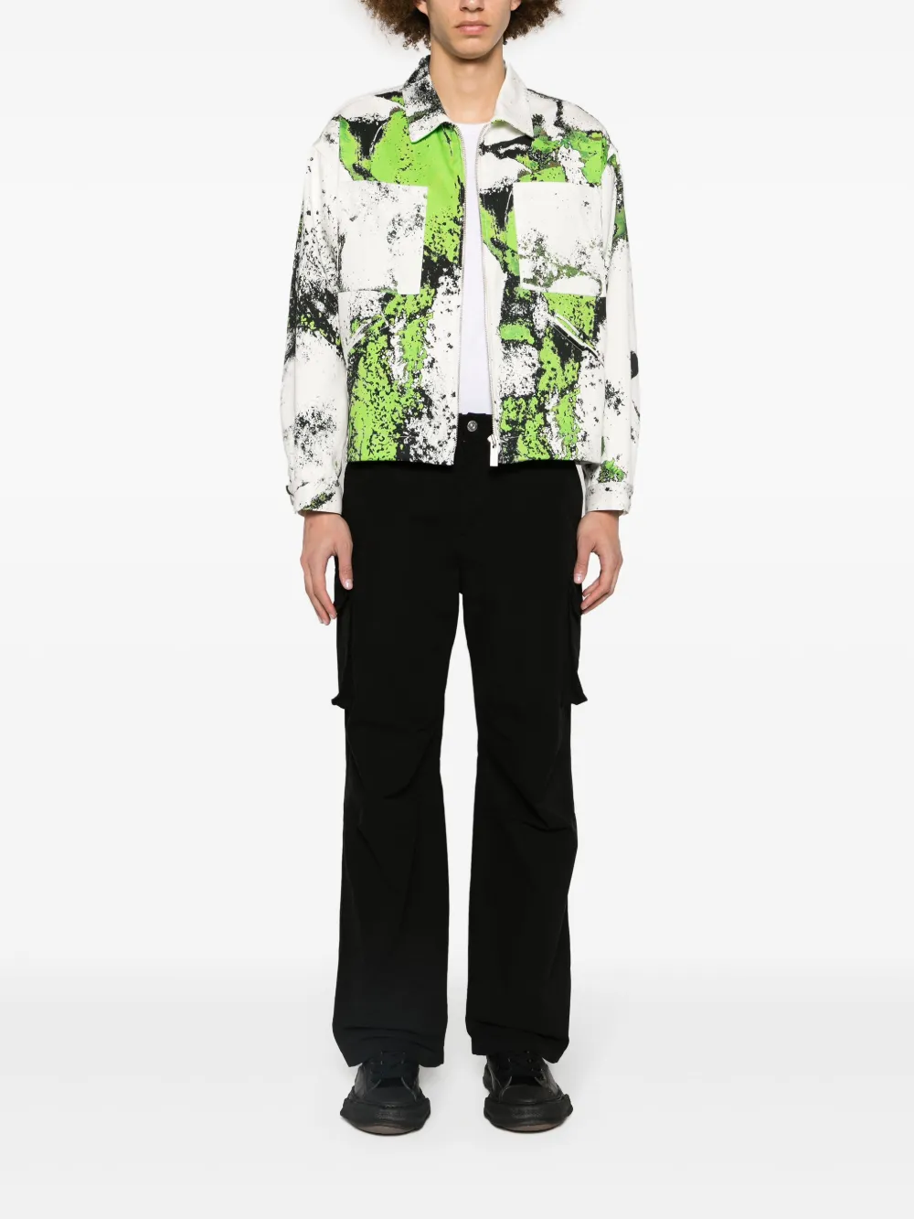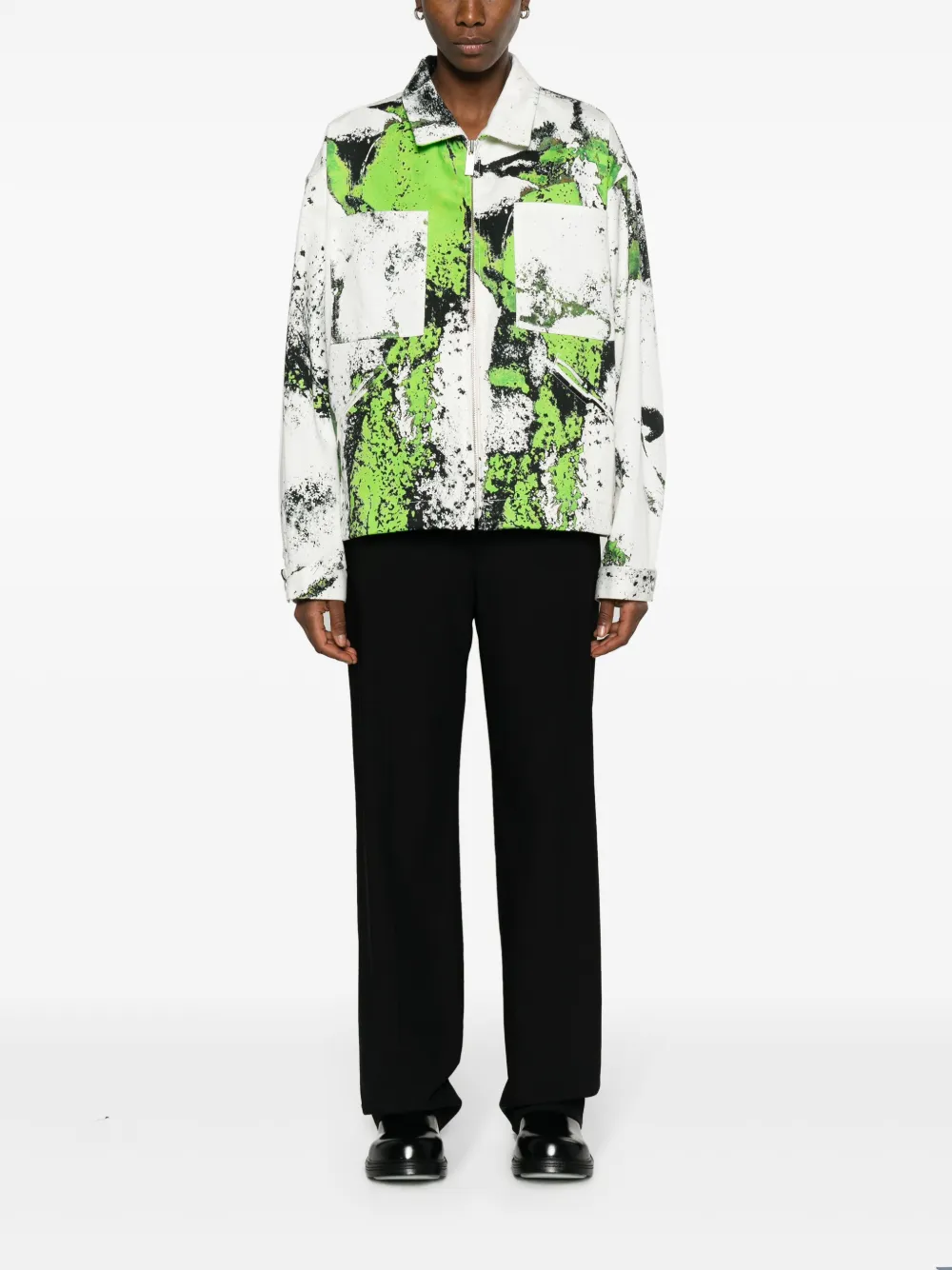Подробнее о товаре: • белый/черный/флуоресцентный зеленый • хлопок • деним • принт • нашивка с логотипом сзади • отложной воротник • застежка на молнии спереди • пуллер с логотипом • длинные рукава • нагрудный накладной карман • манжеты на пуговицах • два прорезных кармана спереди • прямой подол • внутренняя вставка с логотипом • Это унисекс-модель. Обратите внимание, что для нее используется мужская размерная сетка.