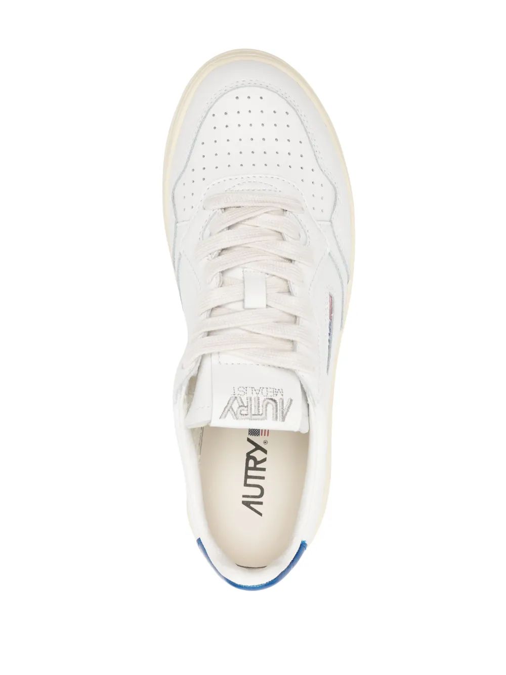 Подробнее о товаре: • белый/синий индиго • телячья кожа • дизайн со вставками • нашивка с логотипом сбоку • нашивка с логотипом на язычке • контрастный задник с логотипом • логотип на подошве • закругленный носок • перфорированный носок • шнуровка спереди • уплотненная щиколотка • подкладка из футера • стелька с логотипом • плоская резиновая подошва • В комплект входит мешок-пыльник для хранения.