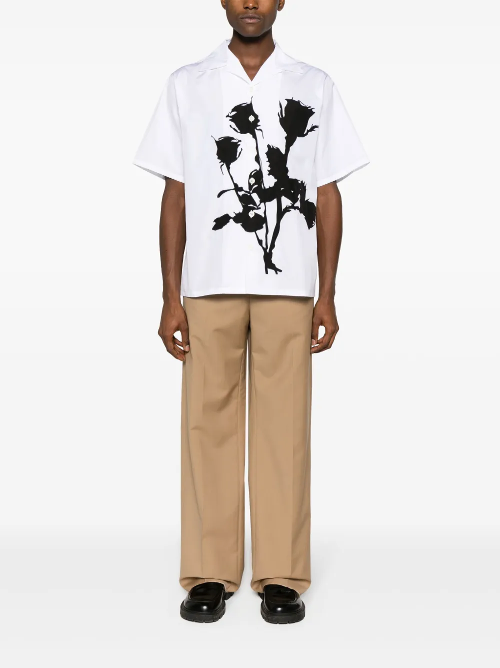 Поплиновая рубашка с цветочным принтом Prada, белый