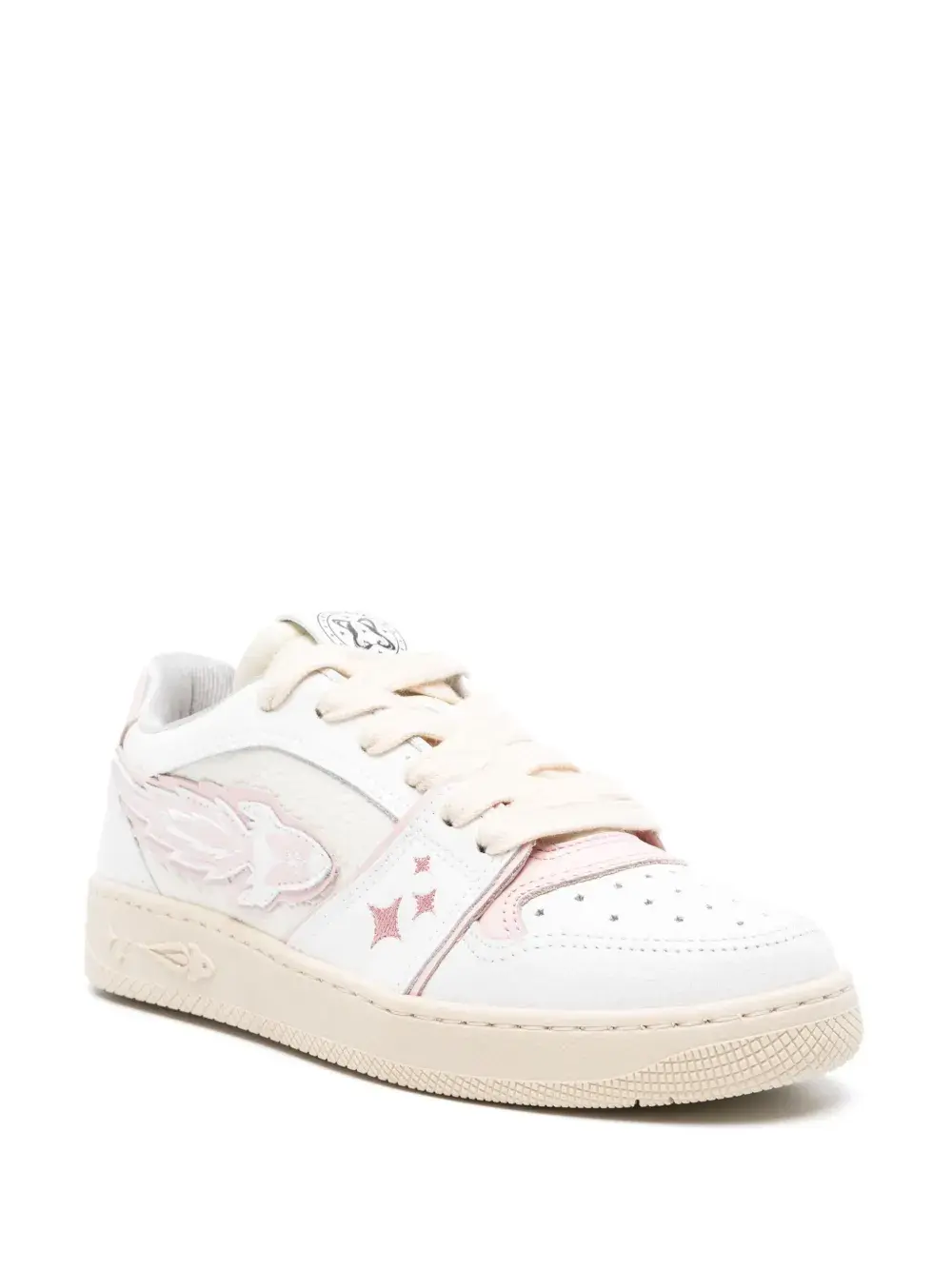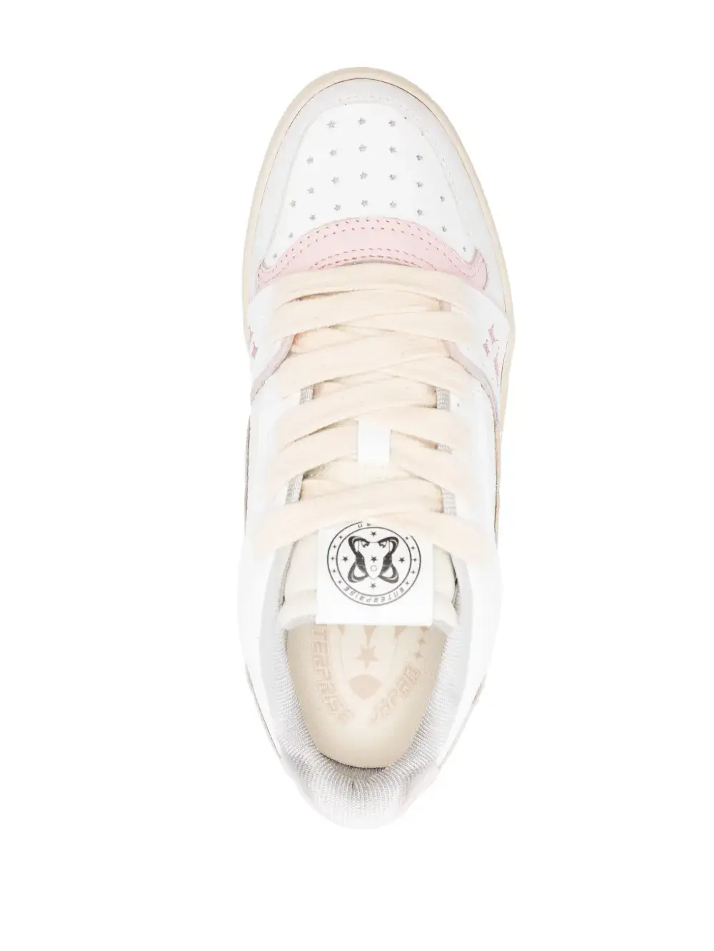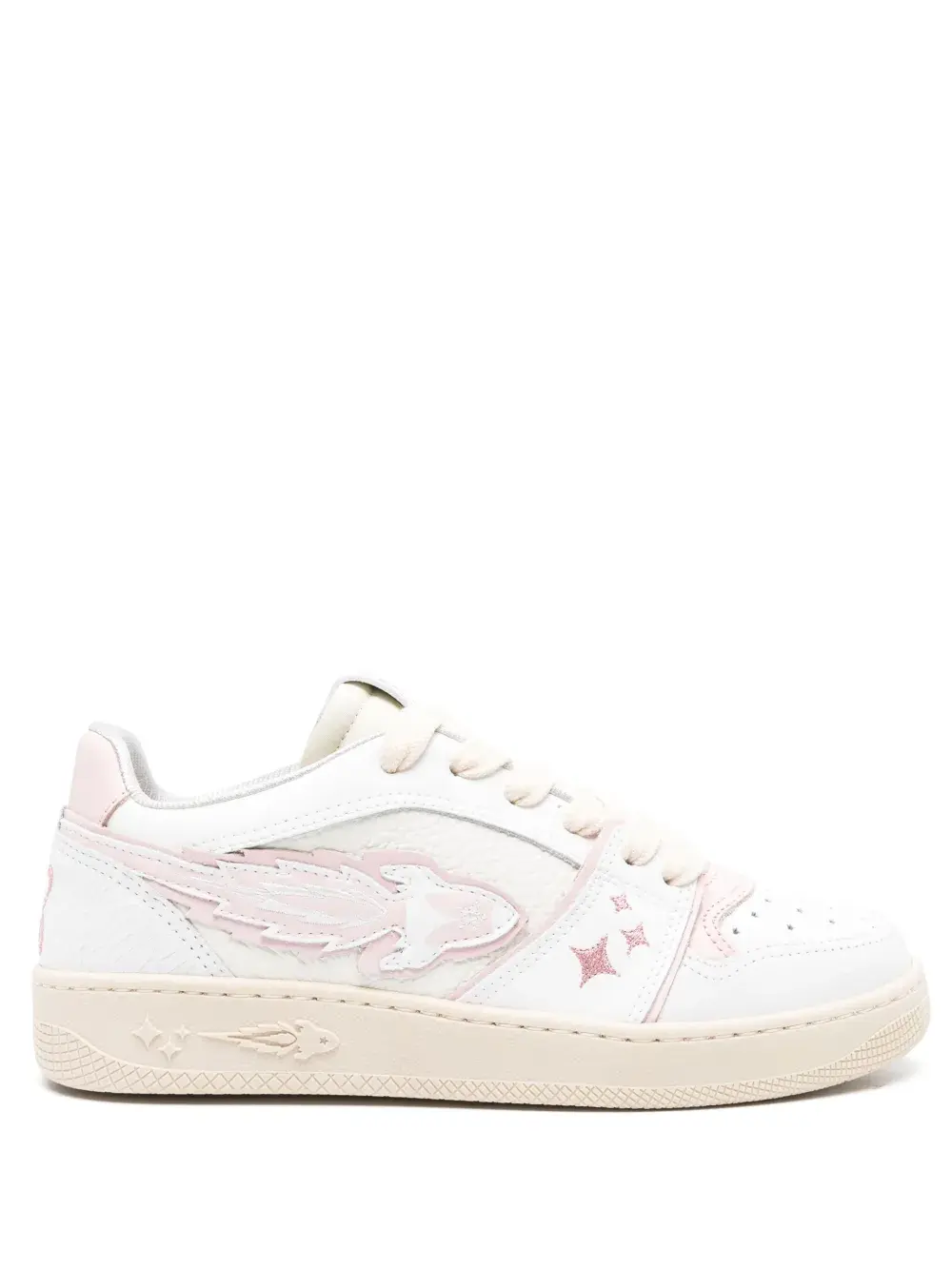 Подробнее о товаре: • белый/светло-розовый/светло-бежевый • телячья кожа • дизайн со вставками • нашивка EJ Rocket сбоку • вышитые звезды • нашивка с логотипом на язычке • вышитый логотип сзади • логотип на подошве • закругленный носок • носок с перфорацией в форме звезд • шнуровка спереди • уплотненная щиколотка • сетчатая подкладка • стелька с логотипом • плоская резиновая подошва