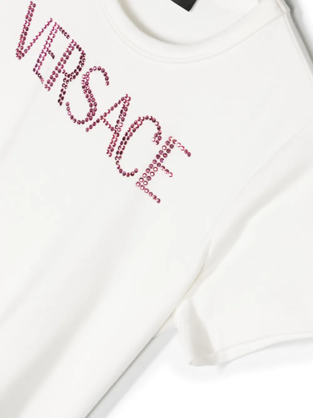 Футболка со стразами и логотипом Versace Kids, белый 20 865₽