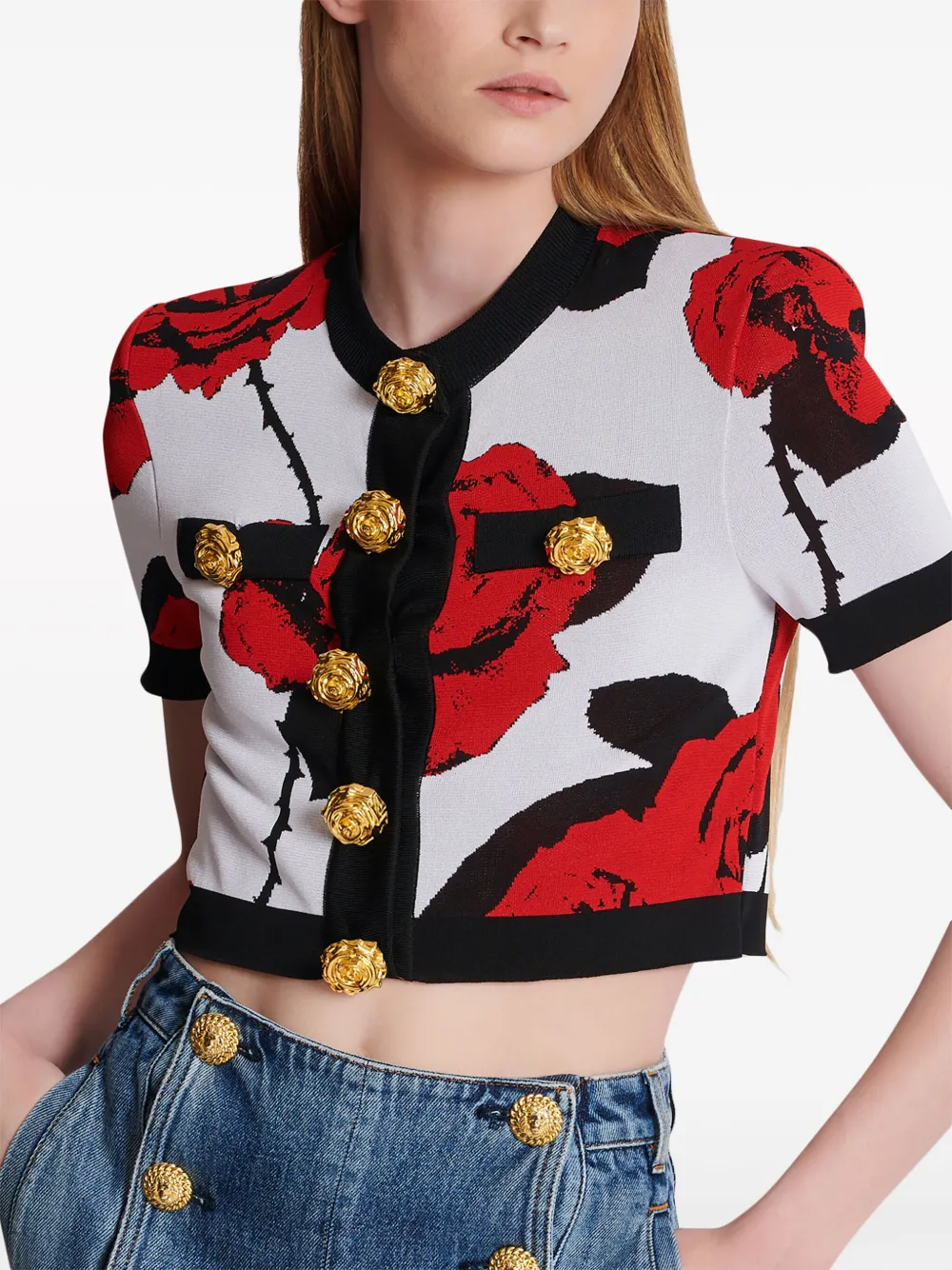 Укороченный кардиган с цветочным узором BALMAIN, белый