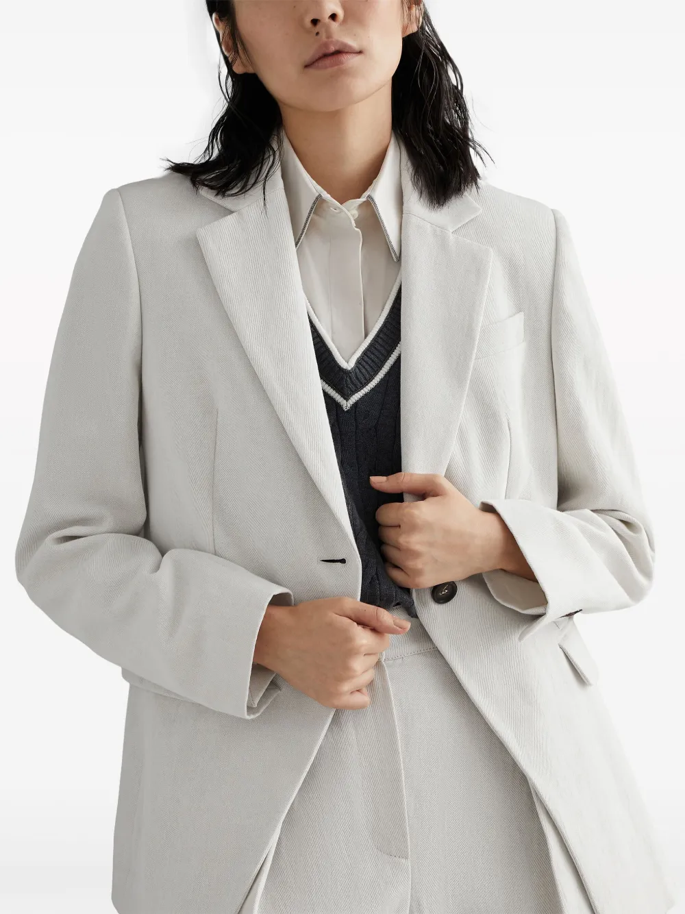 Однобортный габардиновый пиджак Brunello Cucinelli, белый